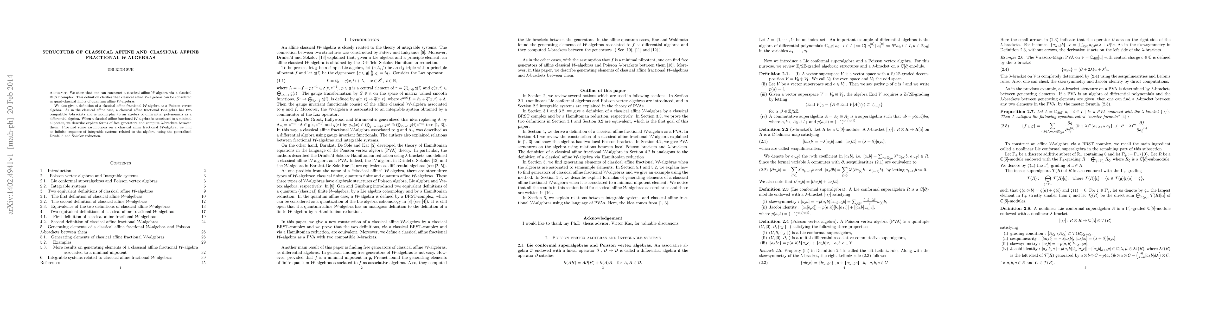 This paper constructs classical affine W-algebras through a classical BRST complex, establishing their quasi-classical limits of quantum affine W-algebras. It also defines classical affine fractional W-algebras as Poisson vertex algebras, detailing their structure and integrable systems via generalized Drinfel'd and Sokolov reduction.