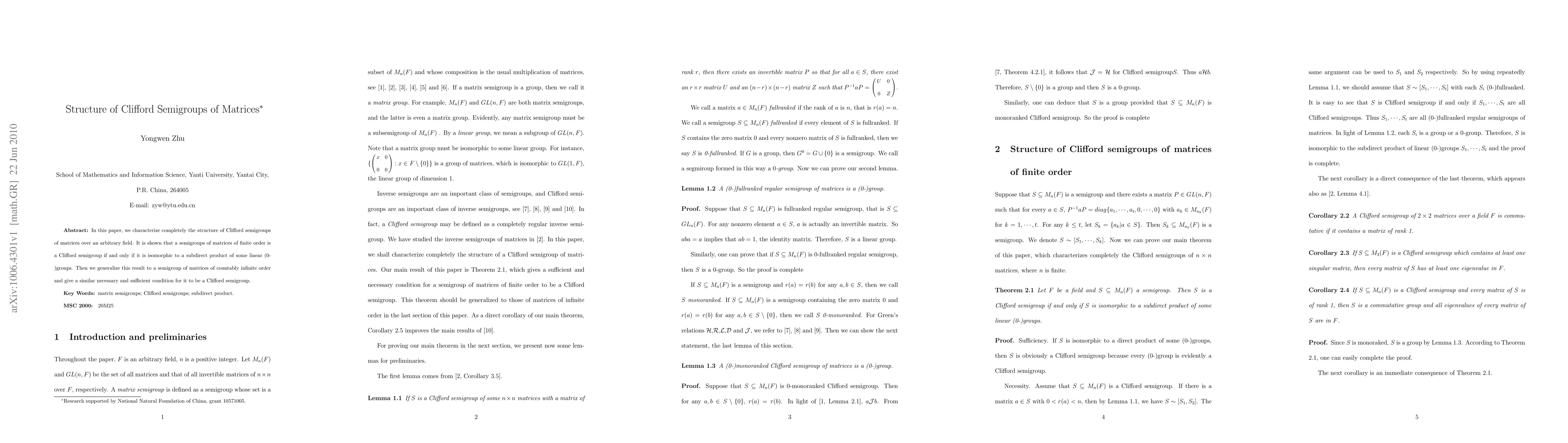 This paper fully characterizes Clifford semigroups of matrices over any field, proving they are isomorphic to subdirect products of linear (0-)groups. It also extends these findings to countably infinite matrix orders, providing a similar necessary and sufficient condition for Clifford semigroup structure.