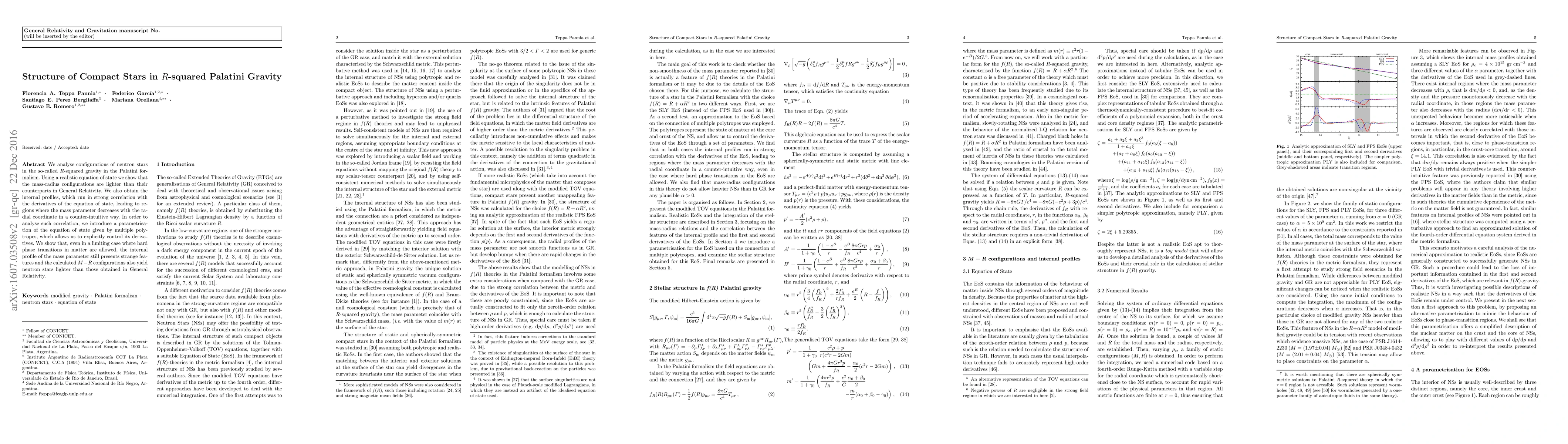 We analyse configurations of compact stars in the so-called R-squared gravity in the Palatini formalism. Using a realistic equation of state we show that the mass-radius configurations are lighter than their counterparts in General Relativity. We also obtain the internal profiles, which run in strong correlation with the derivatives of the equation of state, leading to regions where the mass parameter decreases with the radial coordinate in a counter-intuitive way. In order to analyse such correlation, we introduce a parametrisation of the equation of state given by multiple polytropes, which allows us to explicitly control its derivatives. We show that, even in a limiting case where hard phase transitions in matter are allowed, the internal profile of the mass parameter still presents strange features and the calculated M-R configurations also yield NSs lighter than those obtained in General Relativity.
