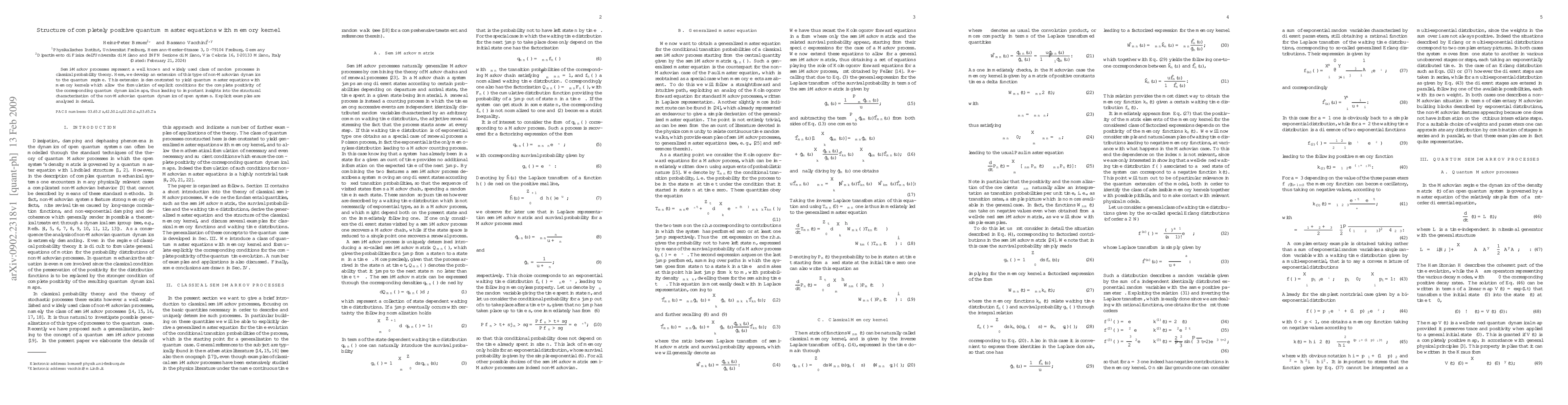 This paper extends semi-Markov processes to the quantum regime, formulating quantum master equations with memory kernels that ensure complete positivity of quantum dynamical maps, providing insights into the structure of non-Markovian quantum dynamics in open systems. Detailed examples are analyzed to illustrate these findings.