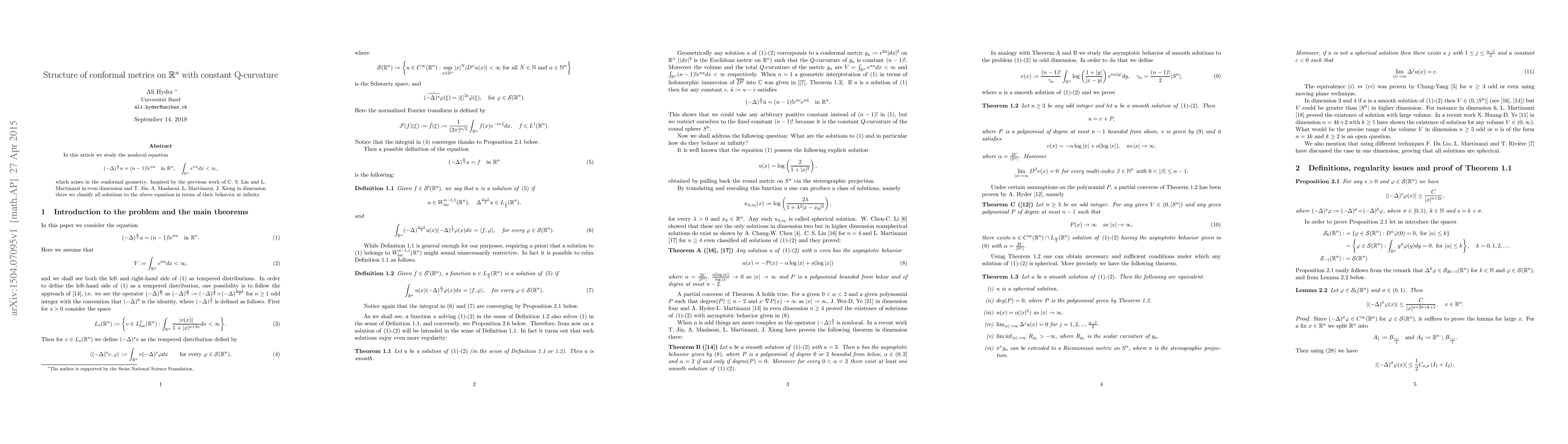 In this article we study the nonlocal equation \begin{align} (-\Delta)^{\frac{n}{2}}u=(n-1)!e^{nu}\quad \text{in $\mathbb{R}^n$}, \quad\int_{\mathbb{R}^n}e^{nu}dx<\infty, \notag \end{align} which arises in the conformal geometry. Inspired by the previous work of C. S. Lin and L. Martinazzi in even dimension and T. Jin, A. Maalaoui, L. Martinazzi, J. Xiong in dimension three we classify all solutions to the above equation in terms of their behavior at infinity.