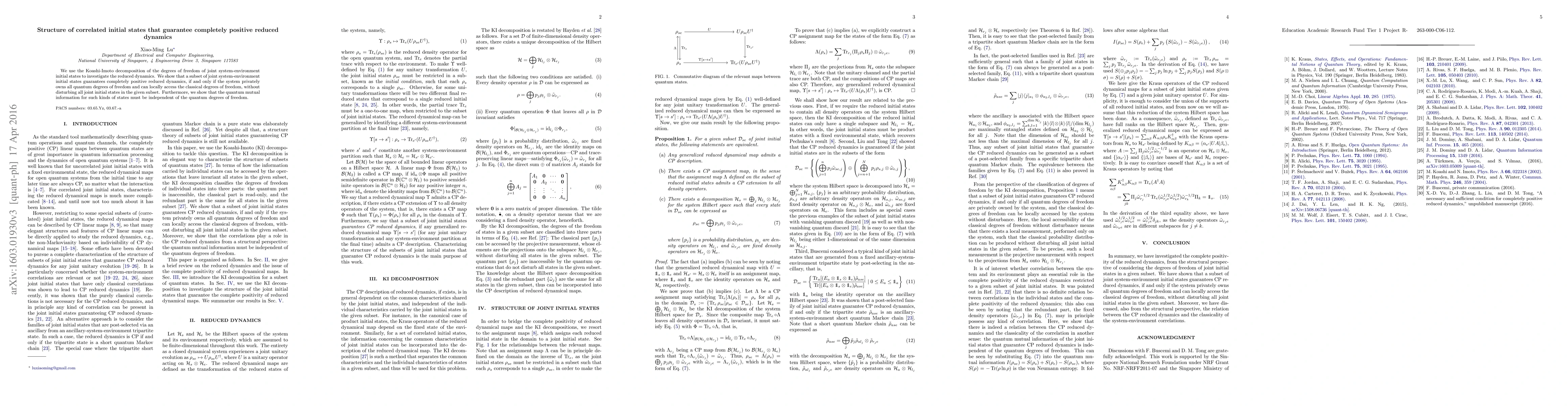 A subset of joint system-environment initial states guarantees completely positive reduced dynamics if the system privately owns all quantum degrees of freedom and can access classical degrees without disturbing other states. This condition is related to quantum mutual information being independent of quantum degrees of freedom.