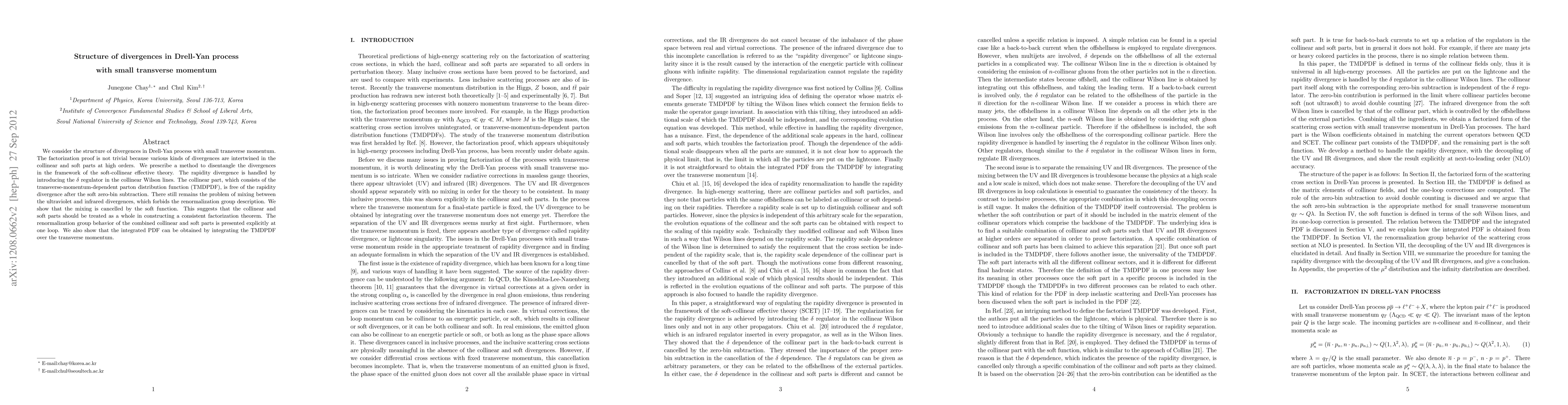 This paper explores the structure of divergences in the Drell-Yan process with small transverse momentum, employing the soft-collinear effective theory to disentangle intertwined divergences. It introduces a $\delta$ regulator to handle rapidity divergences and demonstrates that mixing between ultraviolet and infrared divergences is canceled by the soft function, suggesting a unified treatment of the collinear and soft parts for a consistent factorization theorem.