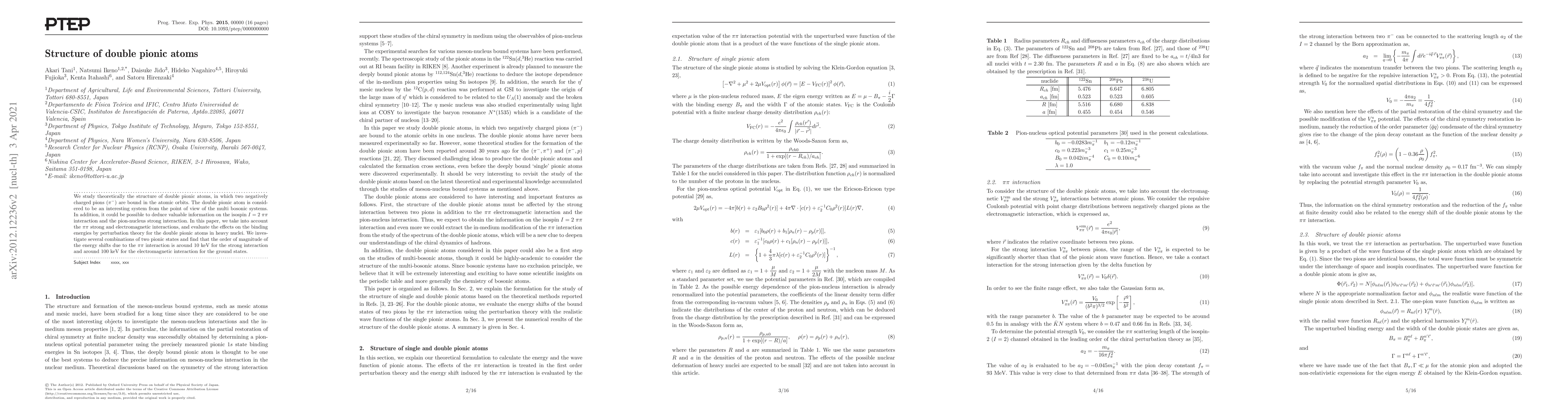 We study theoretically the structure of double pionic atoms, in which two negatively charged pions ($\pi^-$) are bound in the atomic orbits. The double pionic atom is considered to be an interesting system from the point of view of the multi bosonic systems. In addition, it could be possible to deduce valuable information on the isospin $I = 2$ $\pi\pi$ interaction and the pion-nucleus strong interaction. In this paper, we take into account the $\pi\pi$ strong and electromagnetic interactions, and evaluate the effects on the binding energies by perturbation theory for the double pionic atoms in heavy nuclei. We investigate several combinations of two pionic states and find that the order of magnitude of the energy shifts due to the $\pi\pi$ interaction is around 10 keV for the strong interaction and around 100 keV for the electromagnetic interaction for the ground states.