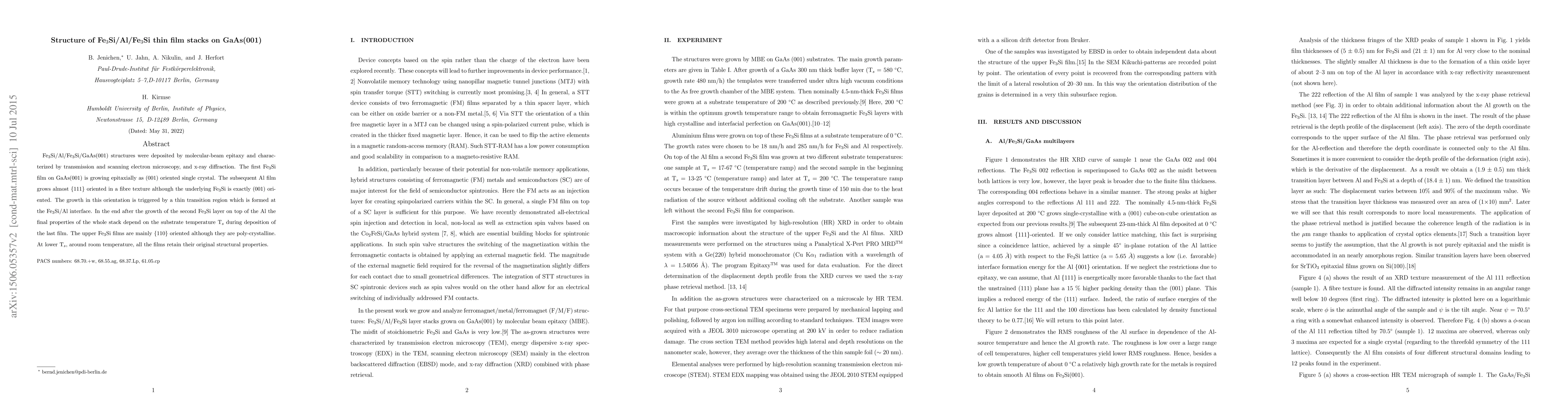 Fe3Si/Al/Fe3Si/GaAs(001) structures were deposited using molecular-beam epitaxy (MBE) and characterized by transmission and scanning electron microscopy, and x-ray diffraction.