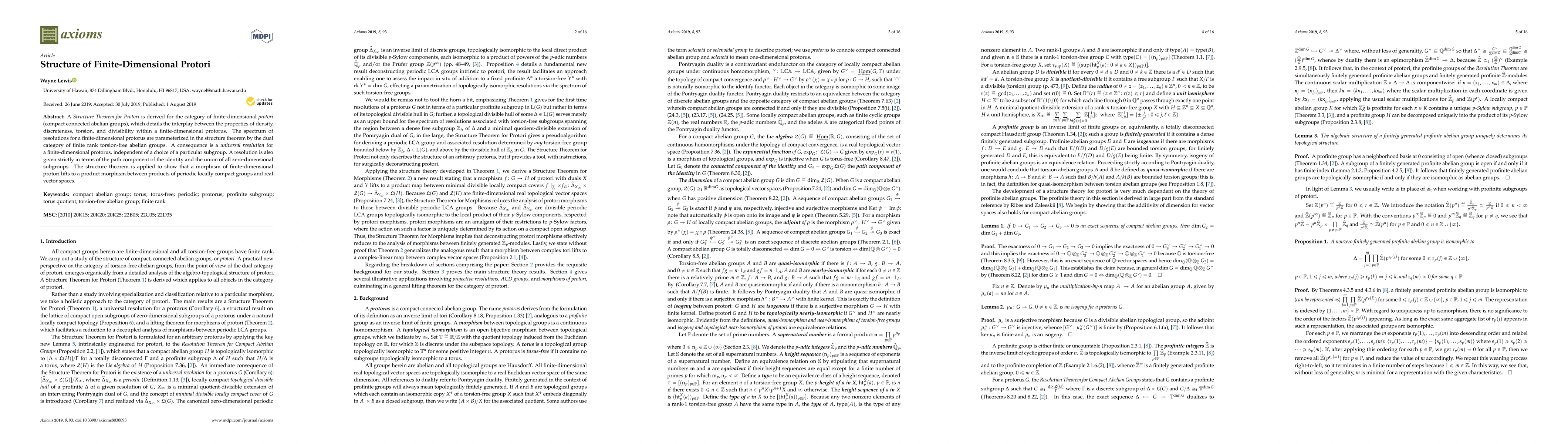 This paper presents a structure theorem for finite-dimensional protori, detailing the interplay between density, discreteness, torsion, and divisibility. It also provides a universal resolution for such protori, independent of subgroup choice, and demonstrates that morphisms between them can be lifted to product morphisms involving periodic locally compact groups and real vector spaces.