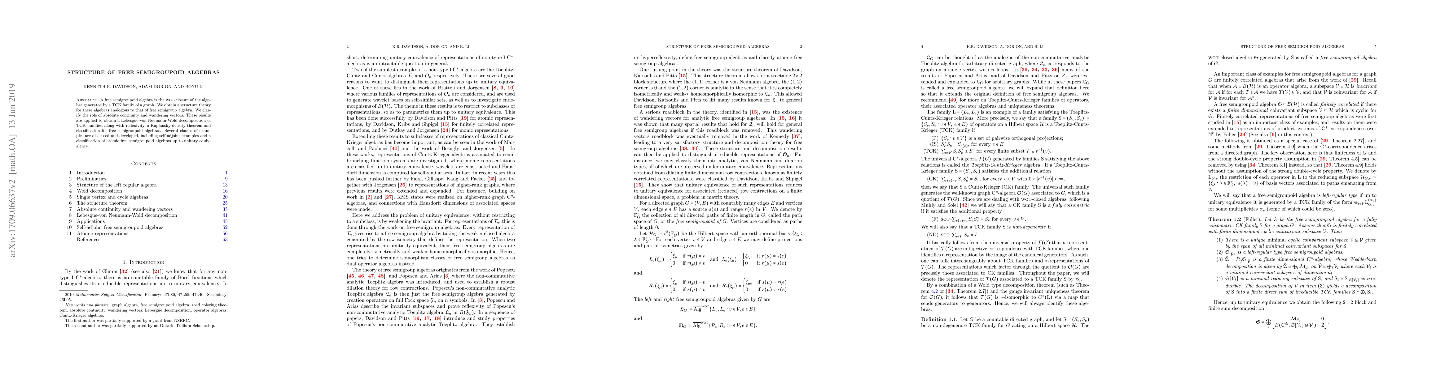 The paper develops a structure theory for free semigroupoid algebras, analogous to that of free semigroup algebras, focusing on absolute continuity and wandering vectors. It includes applications like a Lebesgue-von Neumann-Wold decomposition, reflexivity, and classification of these algebras up to unitary equivalence, with extensive examples.
