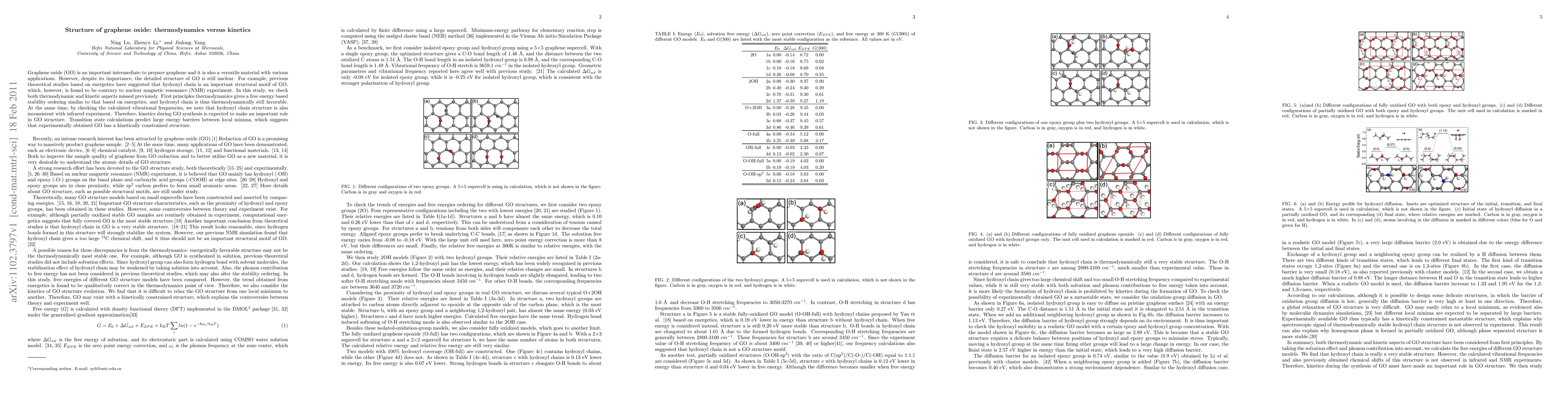 This study investigates the structure of graphene oxide (GO) by considering both thermodynamic and kinetic factors. While thermodynamics favors hydroxyl chains, kinetic constraints during GO synthesis suggest that the actual structure is kinetically constrained due to large energy barriers between local minima, leading to discrepancies with experimental observations.