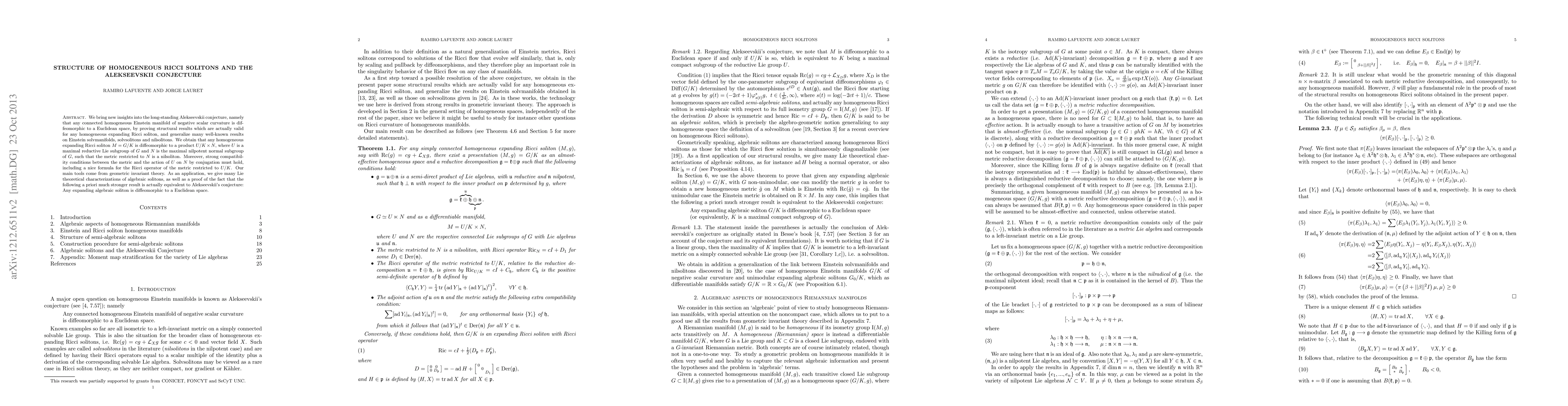 We bring new insights into the long-standing Alekseevskii conjecture, namely that any connected homogeneous Einstein manifold of negative scalar curvature is diffeomorphic to a Euclidean space, by proving structural results which are actually valid for any homogeneous expanding Ricci soliton, and generalize many well-known results on Einstein solvmanifolds, solvsolitons and nilsolitons. We obtain that any homogeneous expanding Ricci soliton M=G/K is diffeomorphic to a product U/K x N, where U is a maximal reductive Lie subgroup of G and N is the maximal nilpotent normal subgroup of G, such that the metric restricted to N is a nilsoliton. Moreover, strong compatibility conditions between the metric and the action of U on N by conjugation must hold, including a nice formula for the Ricci operator of the metric restricted to U/K. Our main tools come from geometric invariant theory. As an application, we give many Lie theoretical characterizations of algebraic solitons, as well as a proof of the fact that the following a priori much stronger result is actually equivalent to Alekseevskii's conjecture: Any expanding algebraic soliton is diffeomorphic to a Euclidean space.