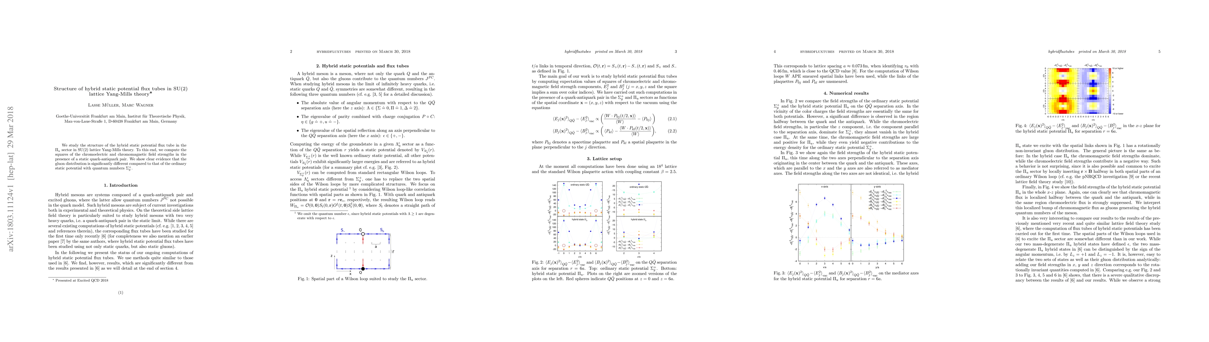This paper investigates the structure of hybrid static potential flux tubes in SU(2) lattice Yang-Mills theory, revealing a distinct gluon distribution compared to the ordinary static potential, as evidenced by the computed chromoelectric and chromomagnetic field strengths.