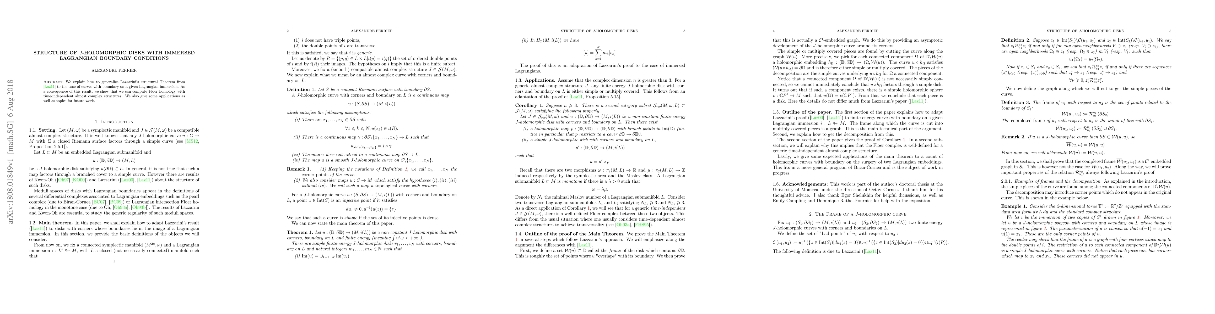 This paper generalizes Lazzarini's structural theorem to $J$-holomorphic disks with Lagrangian boundary conditions, enabling the computation of Floer homology using time-independent almost complex structures. It also outlines potential applications and future research directions.