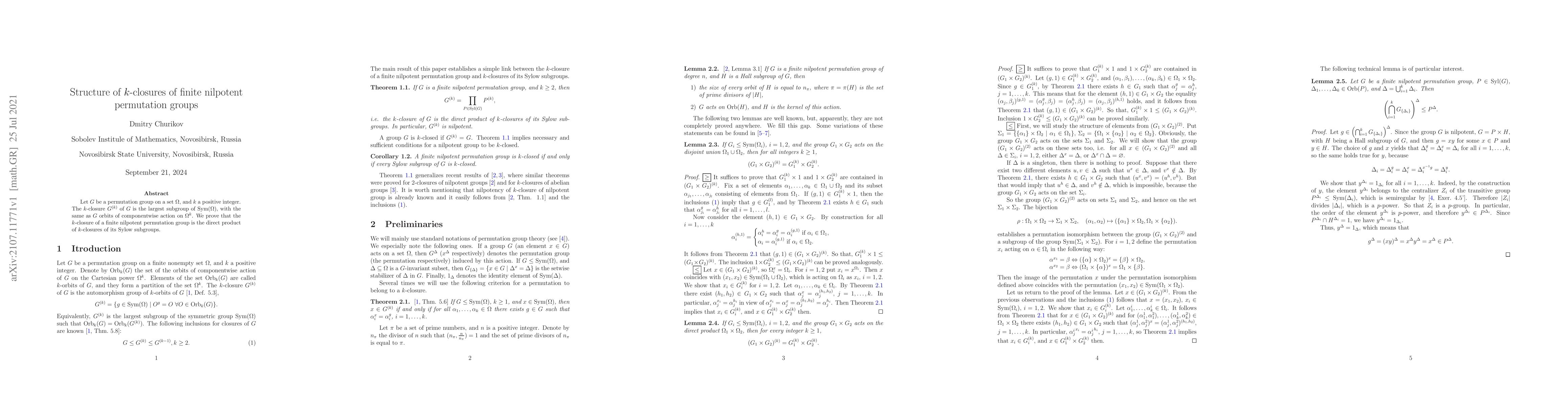 This paper proves that the $k$-closure of a finite nilpotent permutation group $G$ is the direct product of the $k$-closures of its Sylow subgroups. It explores the structure of $G^{(k)}$, the largest subgroup of $\operatorname{Sym}(\Omega)$ that shares $G$'s orbit partition under componentwise action on $\Omega^k$.