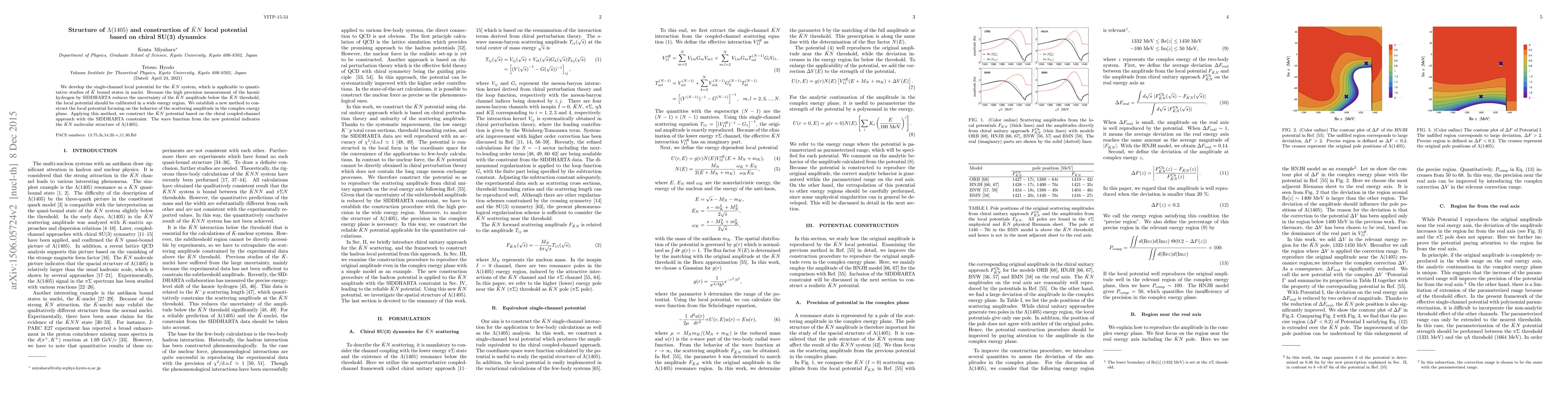 This research constructs a local potential for the KbarN system using chiral SU(3) dynamics, calibrating it with SIDDHARTA's precise kaonic hydrogen measurement. The method focuses on scattering amplitude behavior in the complex energy plane, revealing a KbarN molecular structure for Lambda(1405).