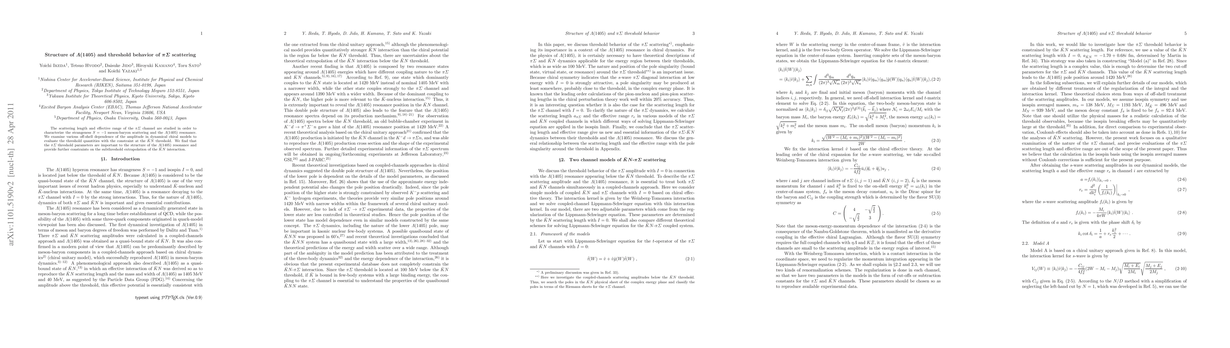 The scattering length and effective range of the piSigma channel are studied in order to characterize the strangeness S=-1 meson-baryon scattering and the Lambda(1405) resonance. We examine various off-shell dependence of the amplitude in dynamical chiral models to evaluate the threshold quantities with the constraint at the KbarN threshold. We find that the piSigma threshold parameters are important to the structure of the Lambda(1405) resonance and provide further constraints on the subthreshold extrapolation of the KbarN interaction.