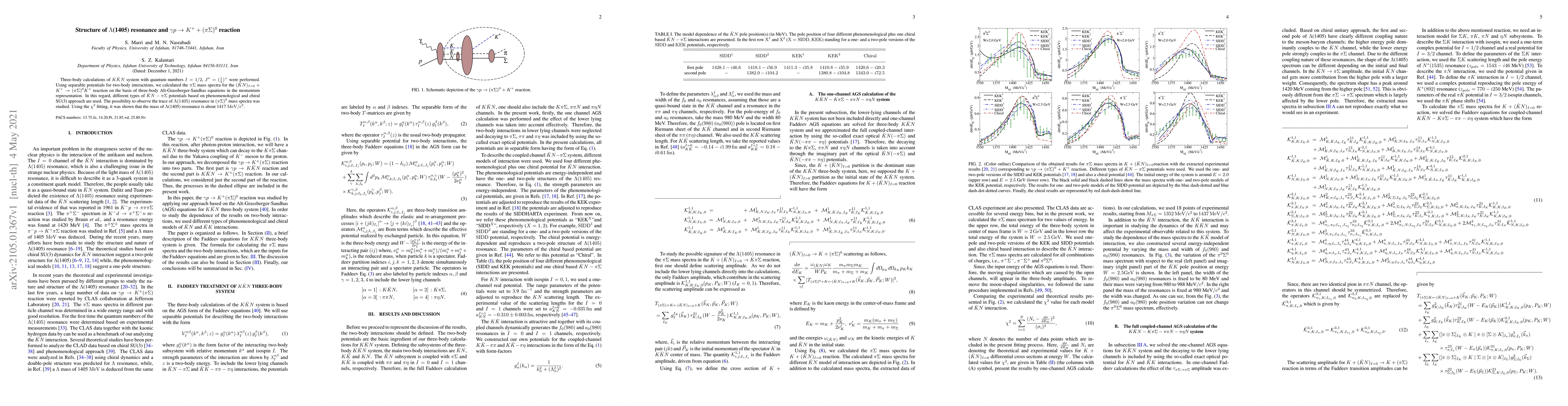 This paper investigates the $\Lambda(1405)$ resonance structure through three-body calculations of the $K\bar{K}N$ system, focusing on the $\gamma{p}\rightarrow K^{+}+(\pi\Sigma)^{0}$ reaction. The study employs separable potentials for two-body interactions and finds the resonance mass to be approximately 1417 MeV/c² through $\chi^{2}$ fitting.