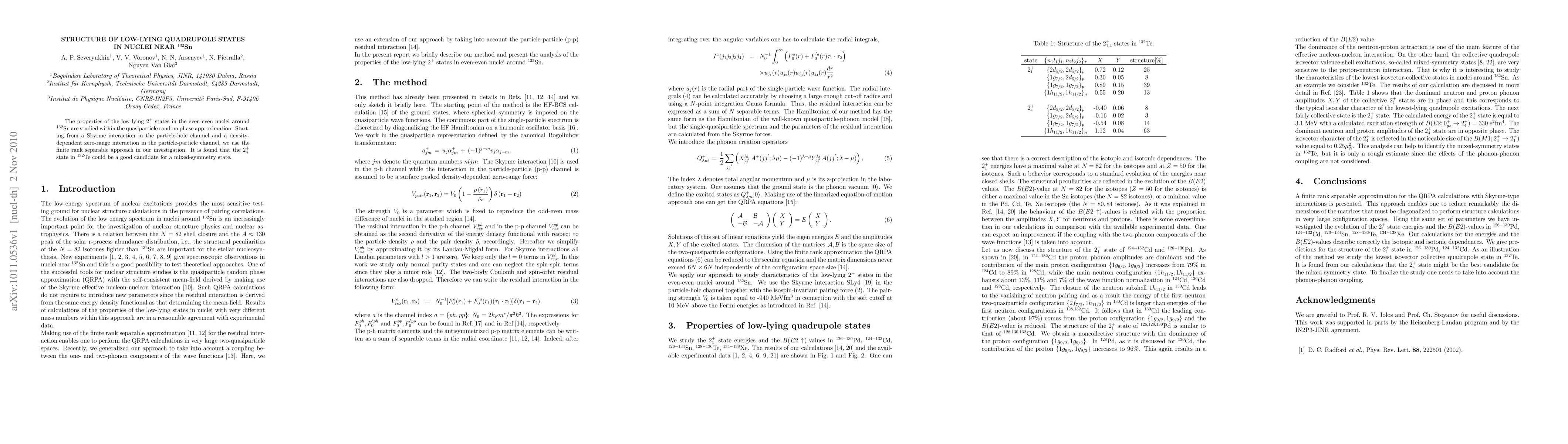The properties of the low-lying 2^+ states in the even-even nuclei around 132Sn are studied within the quasiparticle random phase approximation. Starting from a Skyrme interaction in the particle-hole channel and a density-dependent zero-range interaction in the particle-particle channel, we use the finite rank separable approach in our investigation. It is found that the fourth 2^+ state in 132Te could be a good candidate for a mixed-symmetry state.