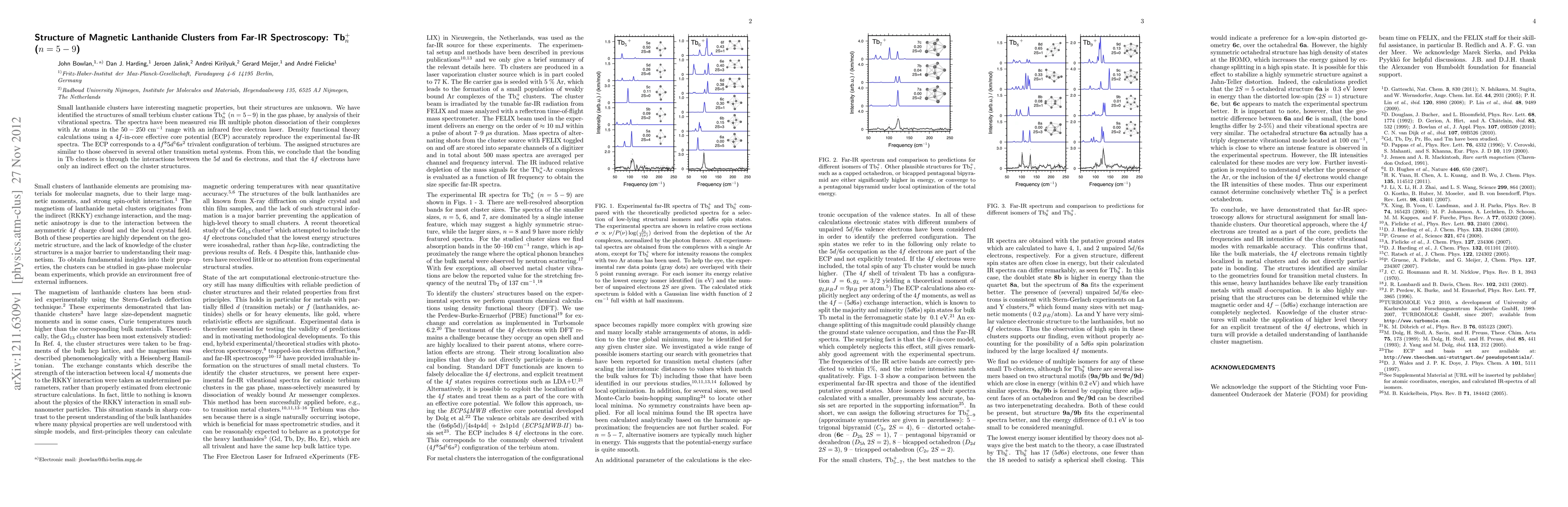 Researchers used far-IR spectroscopy to identify the structures of small terbium clusters in the gas phase, finding that bonding occurs through 5d and 6s electron interactions with minimal 4f electron influence.