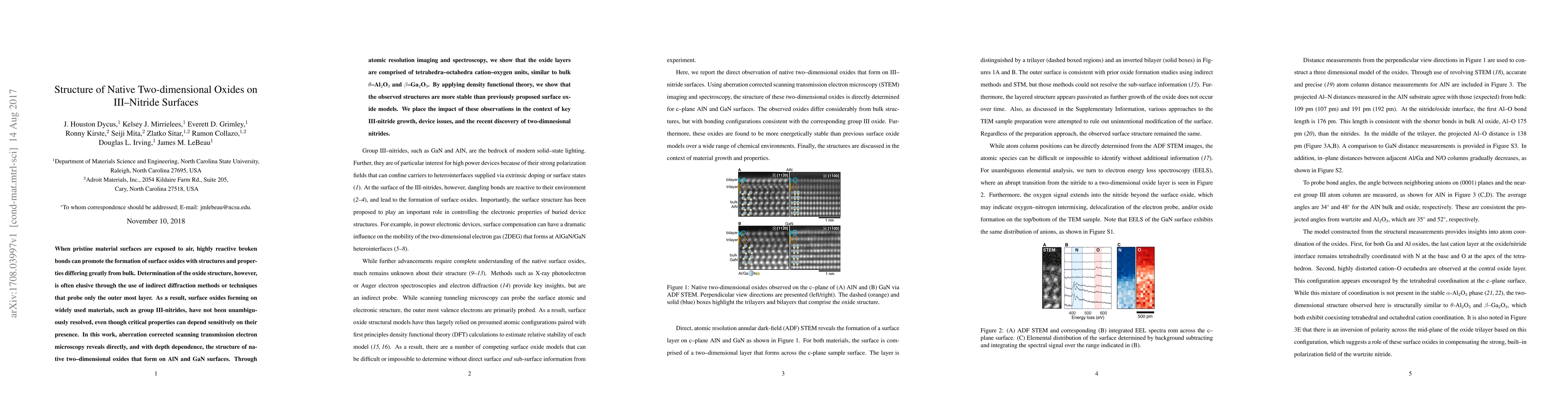Researchers used aberration corrected scanning transmission electron microscopy to directly observe and characterize the structure of native two-dimensional oxides on AlN and GaN surfaces, revealing tetrahedra-octahedra cation-oxygen units similar to bulk $ heta$-Al$_2$O$_3$ and $eta$-Ga$_2$O$_3$. The findings suggest that these structures are more stable than previously proposed surface oxide models.