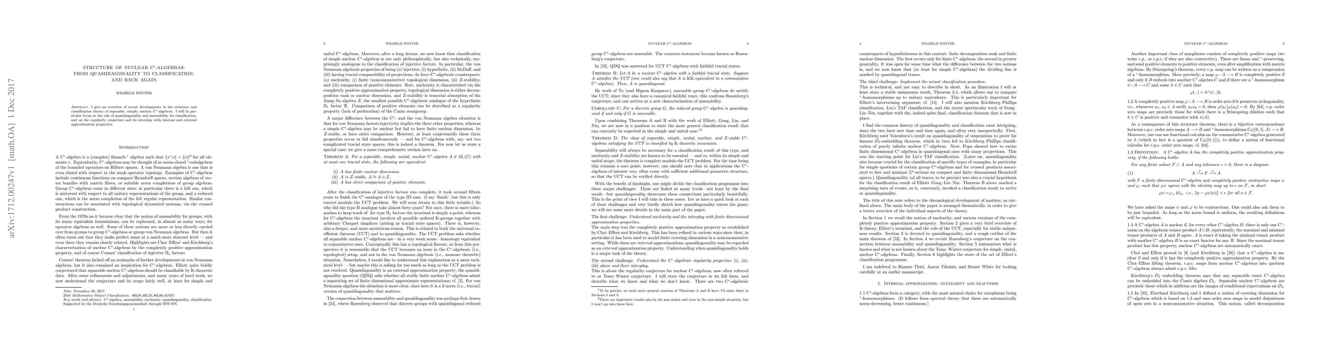 Recent research advances classification theory for separable nuclear C*-algebras by exploring quasidiagonality and amenability, with implications for the regularity conjecture and approximation properties.