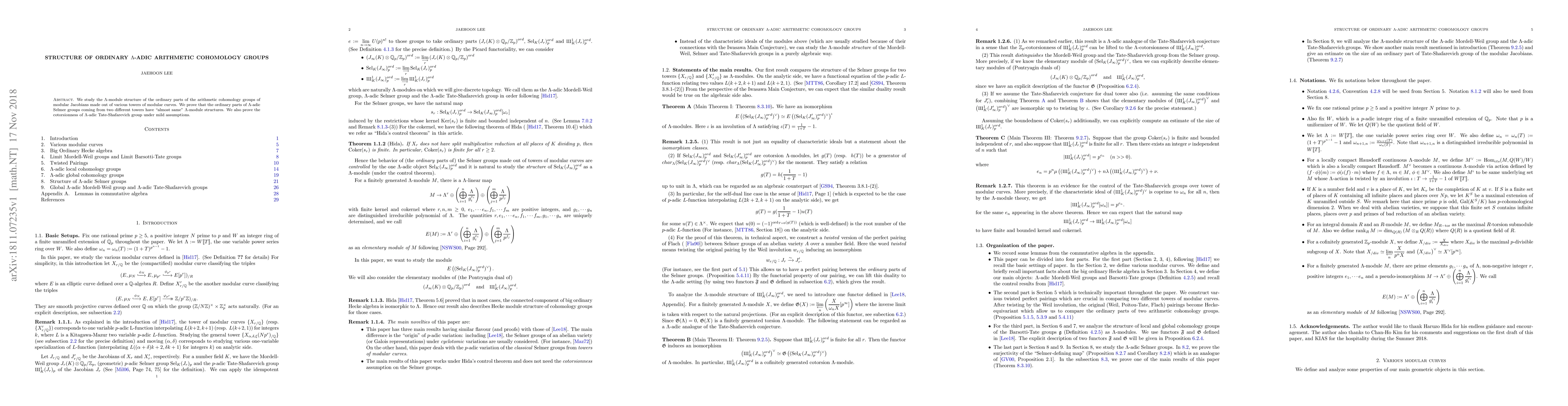 We study the $\Lambda$-module structure of the ordinary parts of the arithmetic cohomology groups of modular Jacobians made out of various towers of modular curves. We prove that the ordinary parts of $\Lambda$-adic Selmer groups coming from two different towers have "almost same" $\Lambda$-module structures. We also prove the cotorsionness of $\Lambda$-adic Tate-Shafarevich group under mild assumptions.