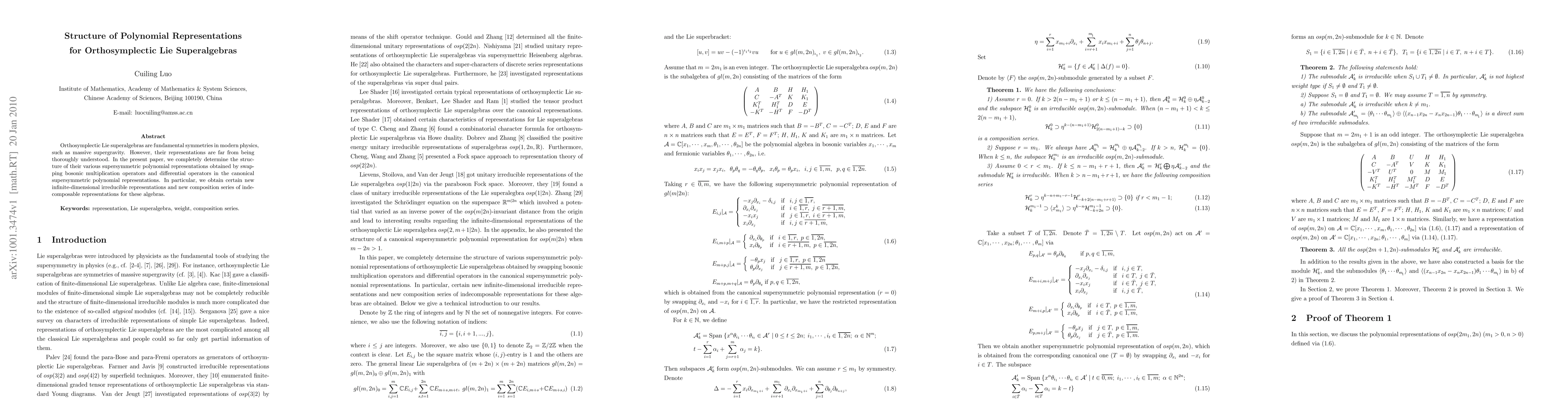 This paper fully elucidates the structure of supersymmetric polynomial representations for orthosymplectic Lie superalgebras by interchanging bosonic multiplication operators and differential operators. It uncovers new infinite-dimensional irreducible representations and composition series for these algebraic structures.