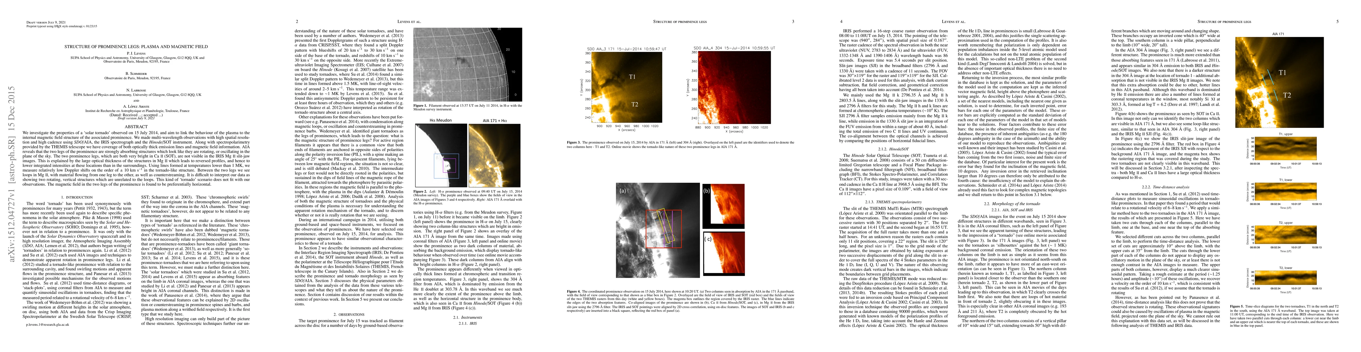 We investigate the properties of a `solar tornado' observed on 15 July 2014, and aim to link the behaviour of the plasma to the internal magnetic field structure of the associated prominence. We made multi-wavelength observations with high spatial resolution and high cadence using SDO/AIA, the IRIS spectrograph and the Hinode/SOT instrument. Along with spectropolarimetry provided by the THEMIS telescope we have coverage of both optically thick emission lines and magnetic field information. AIA reveals that the two legs of the prominence are strongly absorbing structures which look like they are rotating, or oscillating in the plane of the sky. The two prominence legs, which are both very bright in Ca II (SOT), are not visible in the IRIS Mg II slit-jaw images. This is explained by the large optical thickness of the structures in Mg II which leads to reversed profiles, and hence to lower integrated intensities at these locations than in the surroundings. Using lines formed at temperatures lower than 1 MK, we measure relatively low Doppler shifts on the order of +/- 10 km/s in the tornado-like structure. Between the two legs we see loops in Mg II, with material flowing from one leg to the other, as well as counterstreaming. It is difficult to interpret our data as showing two rotating, vertical structures which are unrelated to the loops. This kind of `tornado' scenario does not fit with our observations. The magnetic field in the two legs of the prominence is found to be preferentially horizontal.