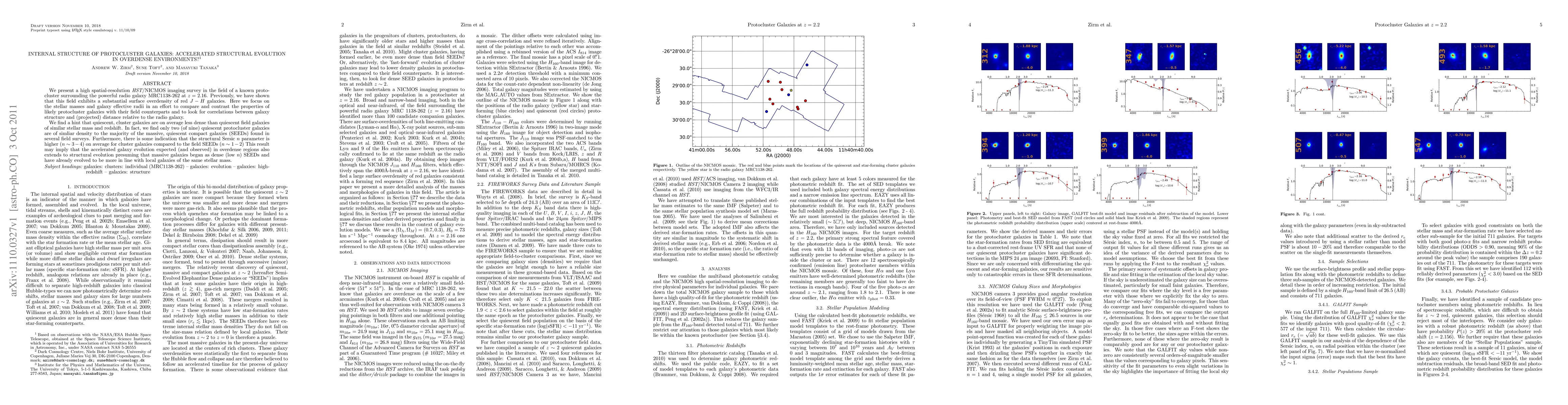 This study uses HST/NICMOS imaging to investigate the structural properties of protocluster galaxies near MRC1138-262 at z=2.16, finding that cluster galaxies tend to have higher structural Sersic n parameters and lower densities compared to field galaxies of similar mass, suggesting accelerated structural evolution in overdense environments.