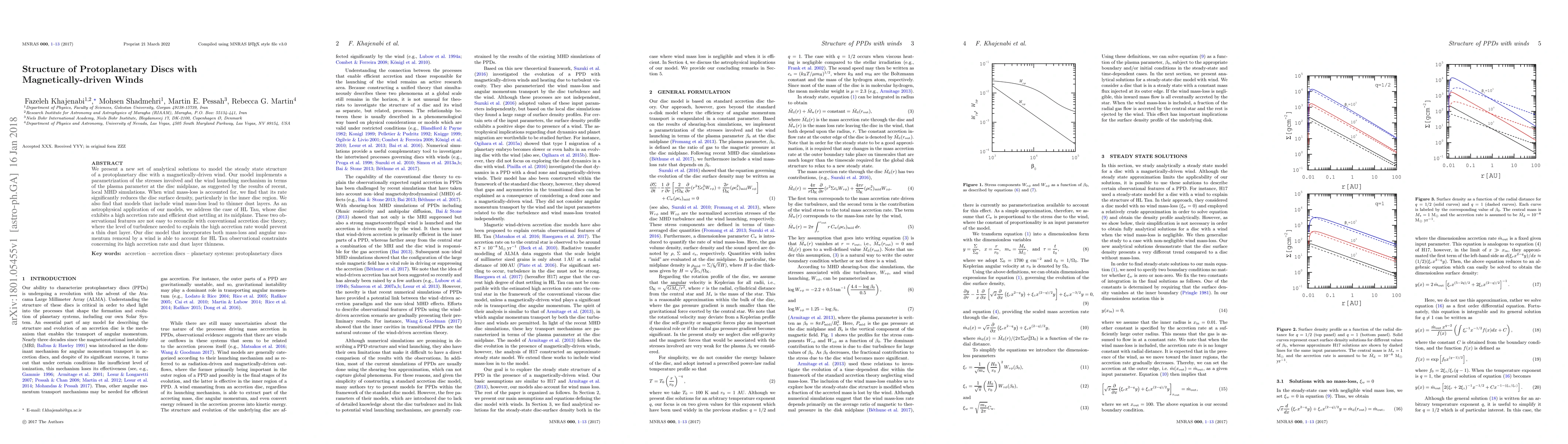 We present a new set of analytical solutions to model the steady state structure of a protoplanetary disc with a magnetically-driven wind. Our model implements a parametrization of the stresses involved and the wind launching mechanism in terms of the plasma parameter at the disc midplane, as suggested by the results of recent, local MHD simulations. When wind mass-loss is accounted for, we find that its rate significantly reduces the disc surface density, particularly in the inner disc region. We also find that models that include wind mass-loss lead to thinner dust layers. As an astrophysical application of our models, we address the case of HL Tau, whose disc exhibits a high accretion rate and efficient dust settling at its midplane. These two observational features are not easy to reconcile with conventional accretion disc theory, where the level of turbulence needed to explain the high accretion rate would prevent a thin dust layer. Our disc model that incorporates both mass-loss and angular momentum removal by a wind is able to account for HL Tau observational constraints concerning its high accretion rate and dust layer thinness.