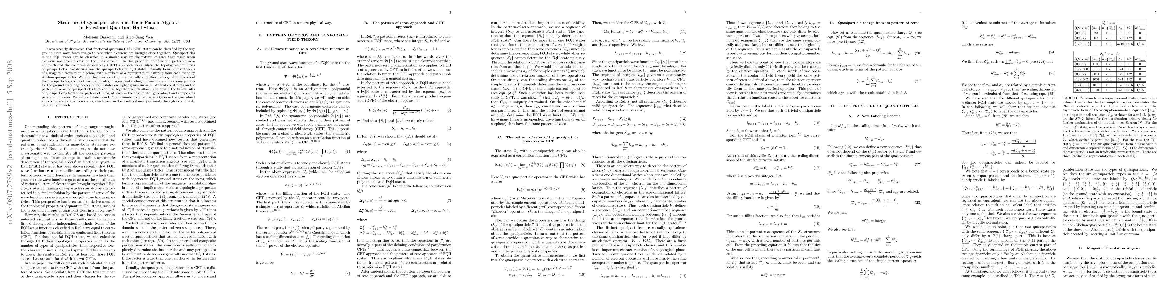 This paper combines the pattern-of-zero and conformal-field-theory methods to analyze quasiparticles in fractional quantum Hall states, revealing their fusion algebra and topological properties. The study shows that quasiparticles form representations of a magnetic translation algebra, simplifying their fusion rules, charges, and scaling dimensions, and providing constraints on their fusion based on zero patterns.