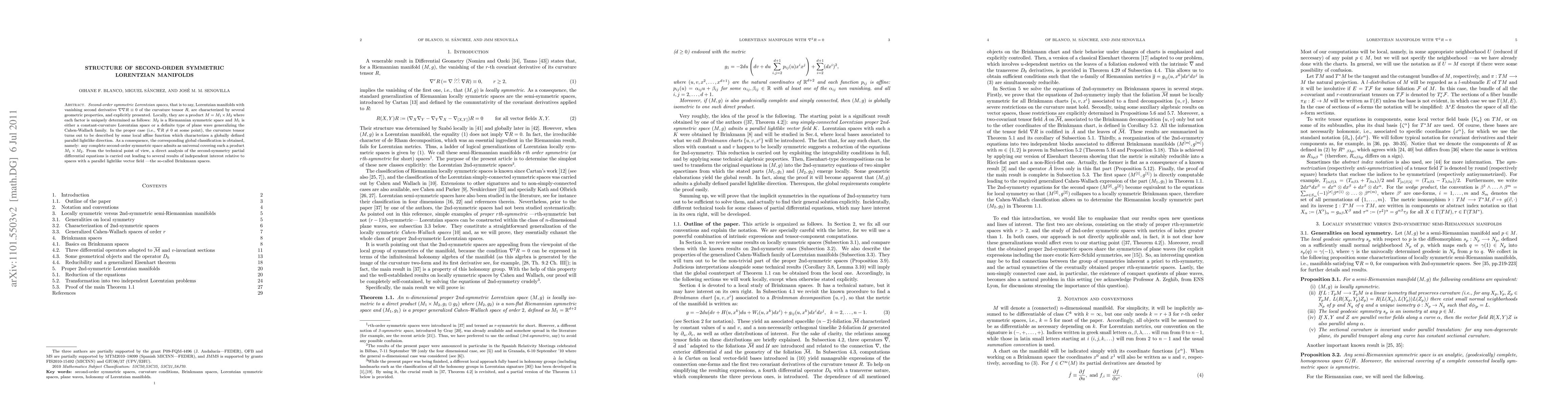This paper characterizes second-order symmetric Lorentzian manifolds, showing they locally decompose into a Riemannian symmetric space and either a constant-curvature Lorentzian space or a generalized plane wave. The global structure is classified as a product of these factors, with implications for spaces possessing parallel lightlike vector fields.