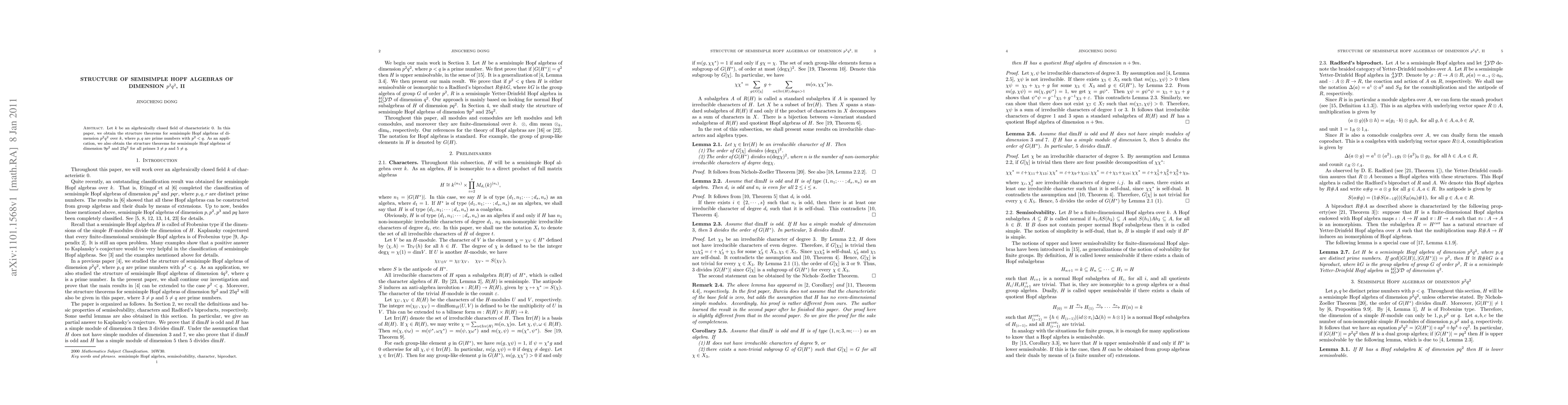 paper, we obtain the structure theorems for semisimple Hopf algebras of