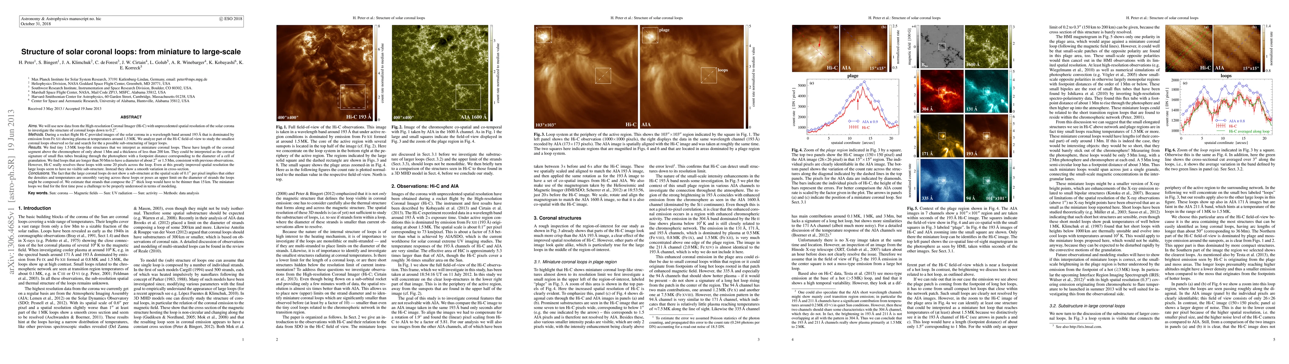 We will use new data from the High-resolution Coronal Imager (Hi-C) with unprecedented spatial resolution of the solar corona to investigate the structure of coronal loops down to 0.2 arcsec. During a rocket flight Hi-C provided images of the solar corona in a wavelength band around 193 A that is dominated by emission from Fe XII showing plasma at temperatures around 1.5 MK. We analyze part of the Hi-C field-of-view to study the smallest coronal loops observed so far and search for the a possible sub-structuring of larger loops. We find tiny 1.5 MK loop-like structures that we interpret as miniature coronal loops. These have length of the coronal segment above the chromosphere of only about 1 Mm and a thickness of less than 200 km. They could be interpreted as the coronal signature of small flux tubes breaking through the photosphere with a footpoint distance corresponding to the diameter of a cell of granulation. We find loops that are longer than 50 Mm to have a diameter of about 2 arcsec or 1.5 Mm, consistent with previous observations. However, Hi-C really resolves these loops with some 20 pixels across the loop. Even at this greatly improved spatial resolution the large loops seem to have no visible sub-structure. Instead they show a smooth variation in cross-section. The fact that the large coronal loops do not show a sub-structure at the spatial scale of 0.1 arcsec per pixel implies that either the densities and temperatures are smoothly varying across these loops or poses an upper limit on the diameter of strands the loops might be composed of. We estimate that strands that compose the 2 arcsec thick loop would have to be thinner than 15 km. The miniature loops we find for the first time pose a challenge to be properly understood in terms of modeling.