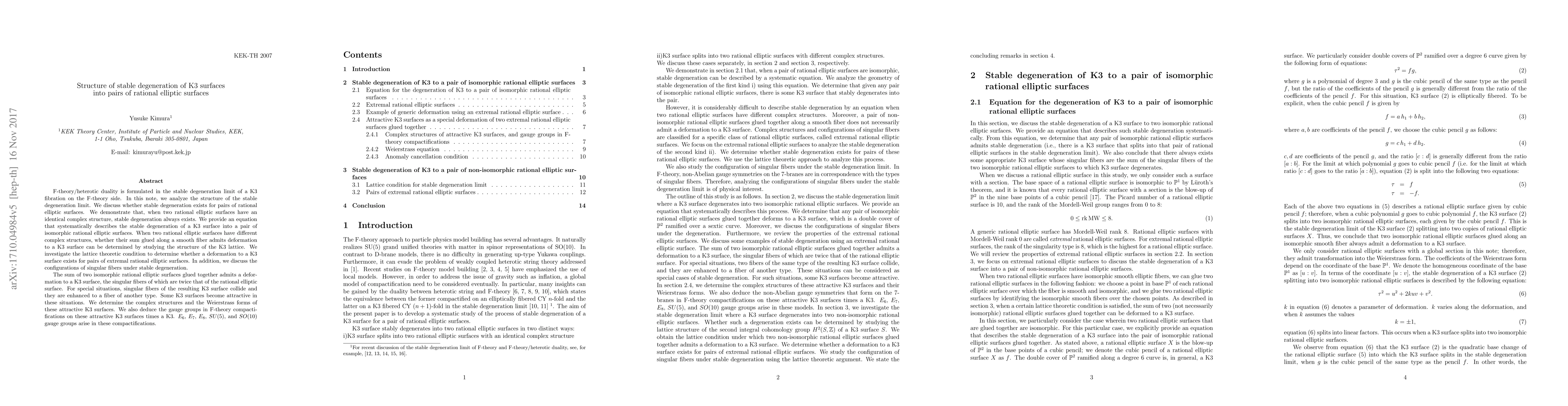 F-theory/heterotic duality is formulated in the stable degeneration limit of a K3 fibration on the F-theory side. In this note, we analyze the structure of the stable degeneration limit. We discuss whether stable degeneration exists for pairs of rational elliptic surfaces. We demonstrate that, when two rational elliptic surfaces have an identical complex structure, stable degeneration always exists. We provide an equation that systematically describes the stable degeneration of a K3 surface into a pair of isomorphic rational elliptic surfaces. When two rational elliptic surfaces have different complex structures, whether their sum glued along a smooth fiber admits deformation to a K3 surface can be determined by studying the structure of the K3 lattice. We investigate the lattice theoretic condition to determine whether a deformation to a K3 surface exists for pairs of extremal rational elliptic surfaces. In addition, we discuss the configurations of singular fibers under stable degeneration. The sum of two isomorphic rational elliptic surfaces glued together admits a deformation to a K3 surface, the singular fibers of which are twice that of the rational elliptic surface. For special situations, singular fibers of the resulting K3 surface collide and they are enhanced to a fiber of another type. Some K3 surfaces become attractive in these situations. We determine the complex structures and the Weierstrass forms of these attractive K3 surfaces. We also deduce the gauge groups in F-theory compactifications on these attractive K3 surfaces times a K3. $E_6$, $E_7$, $E_8$, $SU(5)$, and $SO(10)$ gauge groups arise in these compactifications.
