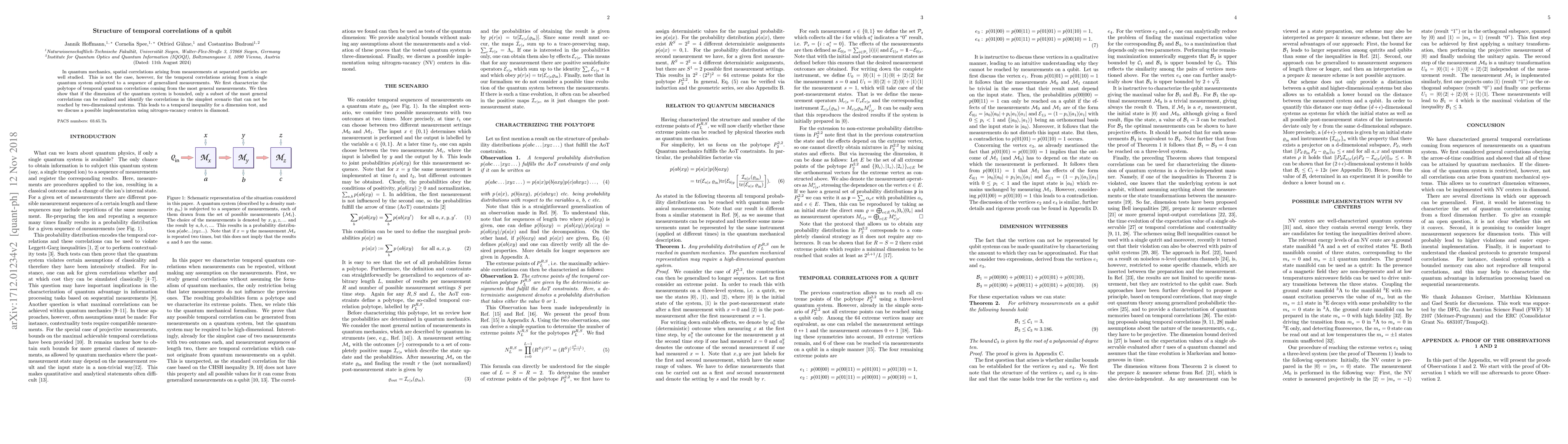 This paper investigates temporal correlations in quantum systems from generalized measurements, characterizing the polytope of such correlations and identifying limitations for systems with bounded dimensions. It proposes a temporal inequality for dimension testing and suggests a practical implementation using nitrogen-vacancy centers in diamond.