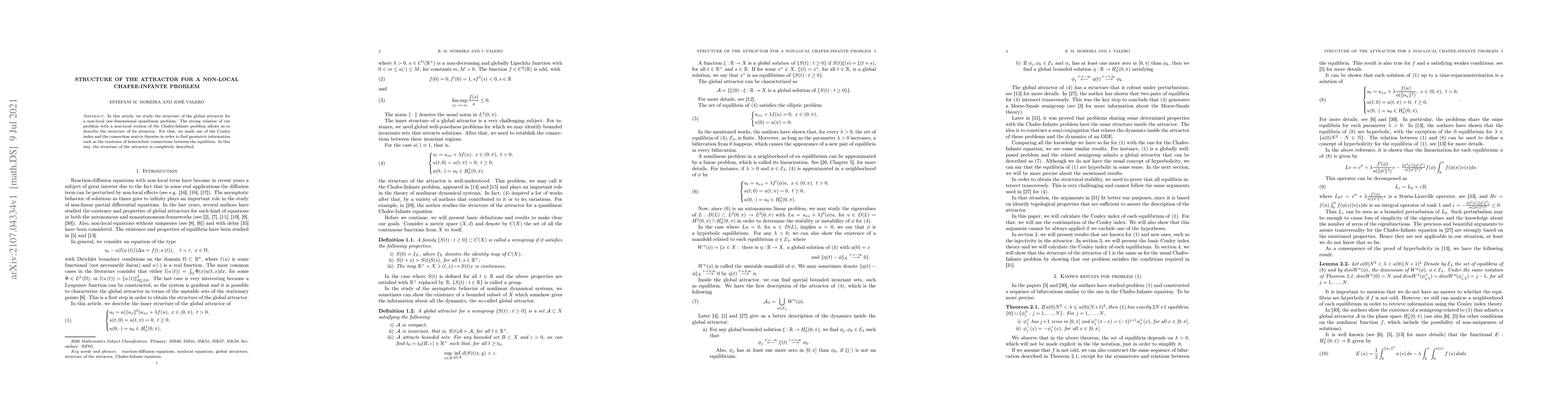 In this article, we study the structure of the global attractor for a non-local one-dimensional quasilinear problem. The strong relation of our problem with a non-local version of the Chafee-Infante problem allows us to describe the structure of its attractor. For that, we made use of the Conley index and the connection matrix theories in order to find geometric information such as the existence of heteroclinic connections between the equilibria. In this way, the structure of the attractor is completely described.