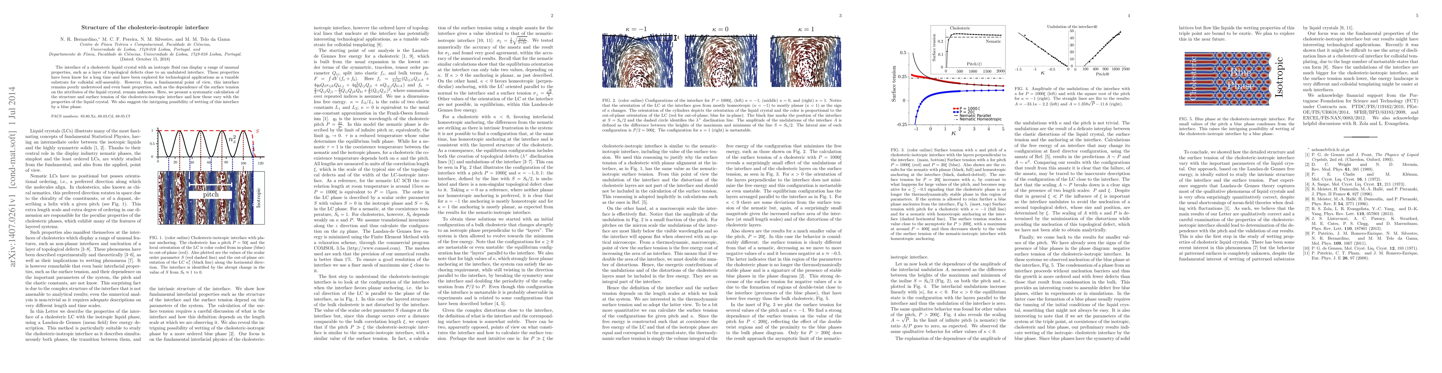 This paper systematically investigates the structure and surface tension of the cholesteric-isotropic liquid crystal interface, revealing its dependence on liquid crystal properties and suggesting the potential for blue phase wetting. The findings enhance understanding of this interface's fundamental properties and their technological applications.