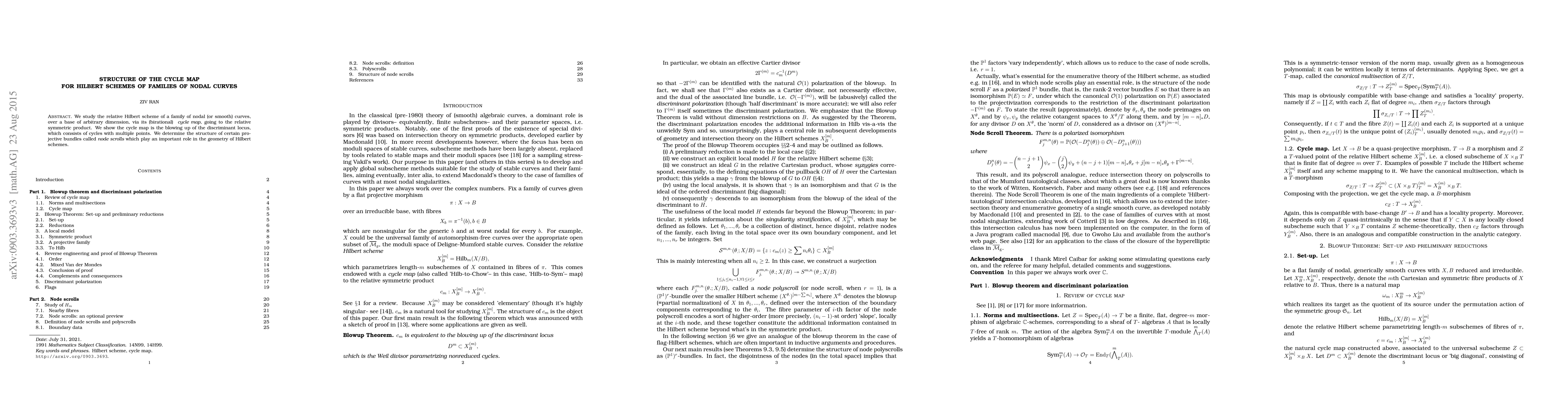 We study the relative Hilbert scheme of a family of nodal (or smooth) curves, over a base of arbitrary dimension, via its (birational) cycle map, going to the relative symmetric product. We show the cycle map is the blowing up of the discriminant locus, which consists of cycles with multiple points. We determine the relevant cotangent sheaves and complexes. We determine the structure of certain projective bundles called node scrolls, which play an important role in the geometry of Hilbert schemes.