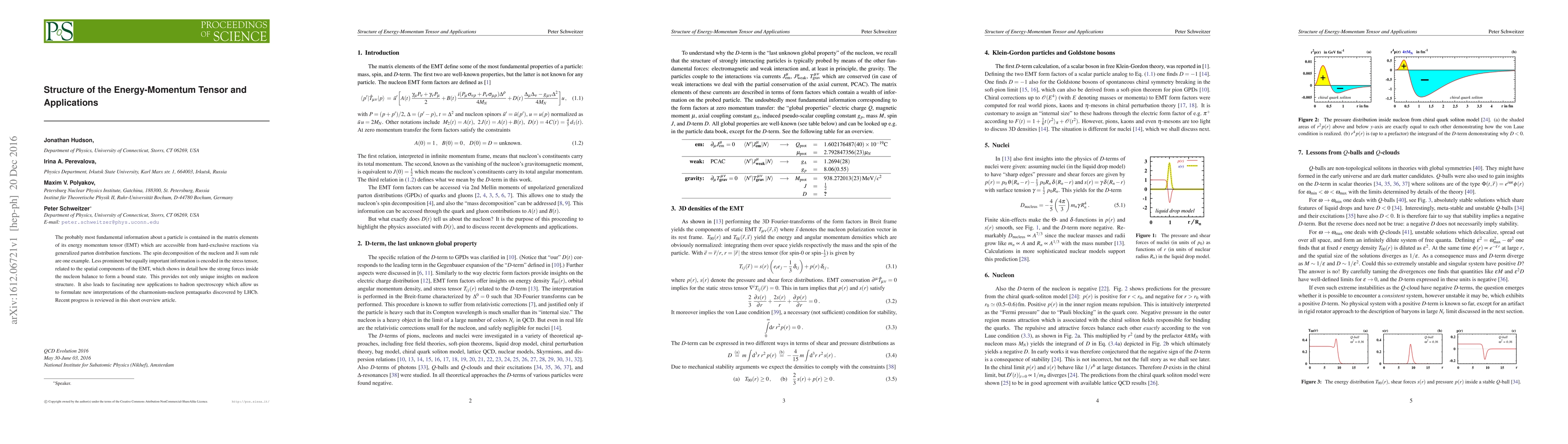 The probably most fundamental information about a particle is contained in the matrix elements of its energy momentum tensor (EMT) which are accessible from hard-exclusive reactions via generalized parton distribution functions. The spin decomposition of the nucleon and Ji sum rule are one example. Less prominent but equally important information is encoded in the stress tensor, related to the spatial components of the EMT, which shows in detail how the strong forces inside the nucleon balance to form a bound state. This provides not only unique insights on nucleon structure. It also leads to fascinating new applications to hadron spectroscopy which allow us to formulate new interpretations of the charmonium-nucleon pentaquarks discovered by LHCb. Recent progress is reviewed in this short overview article.