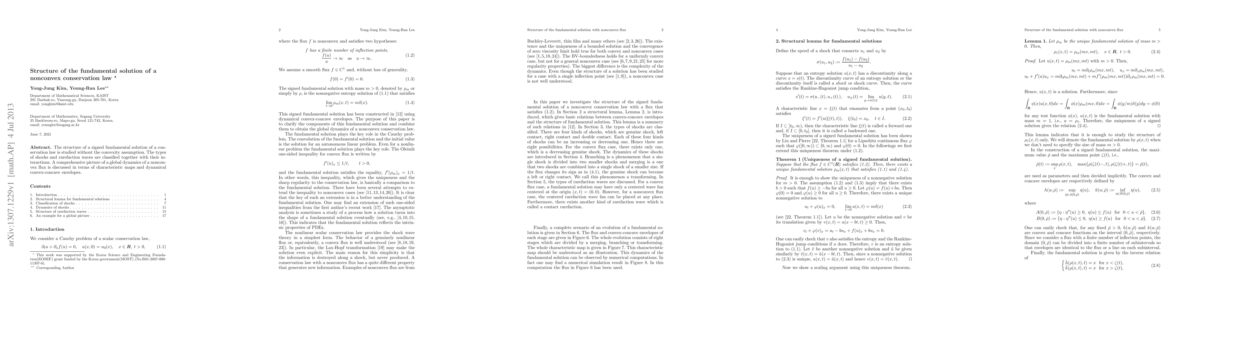 The structure of a signed fundamental solution of a conservation law is studied without the convexity assumption. The types of shocks and rarefaction waves are classified together with their interactions. A comprehensive picture of a global dynamics of a nonconvex flux is discussed in terms of characteristic maps and dynamical convex-concave envelopes.