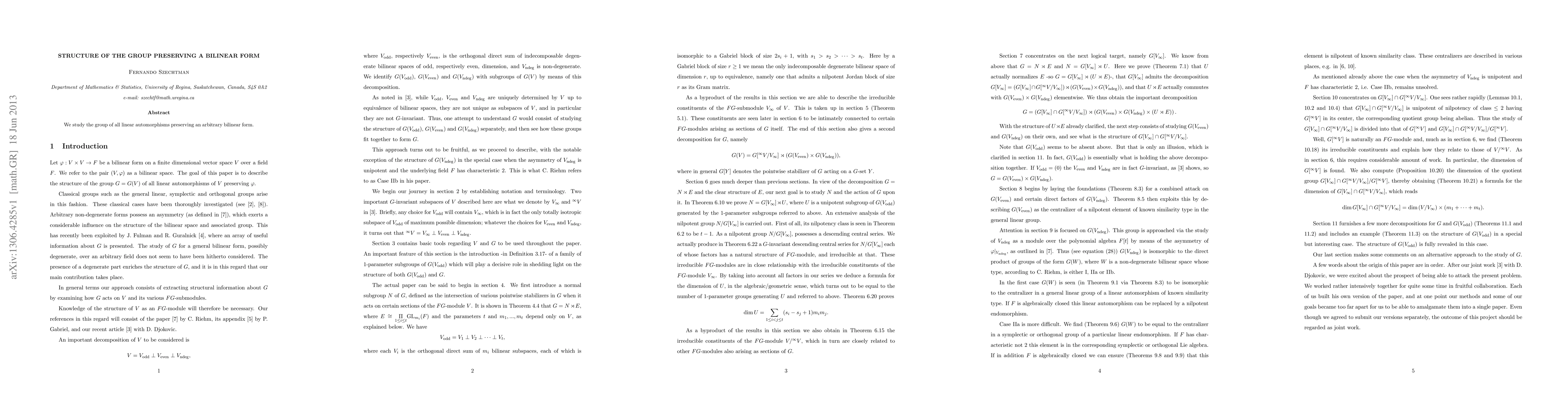 We study the group of all linear automorphisms preserving an arbitrary bilinear form