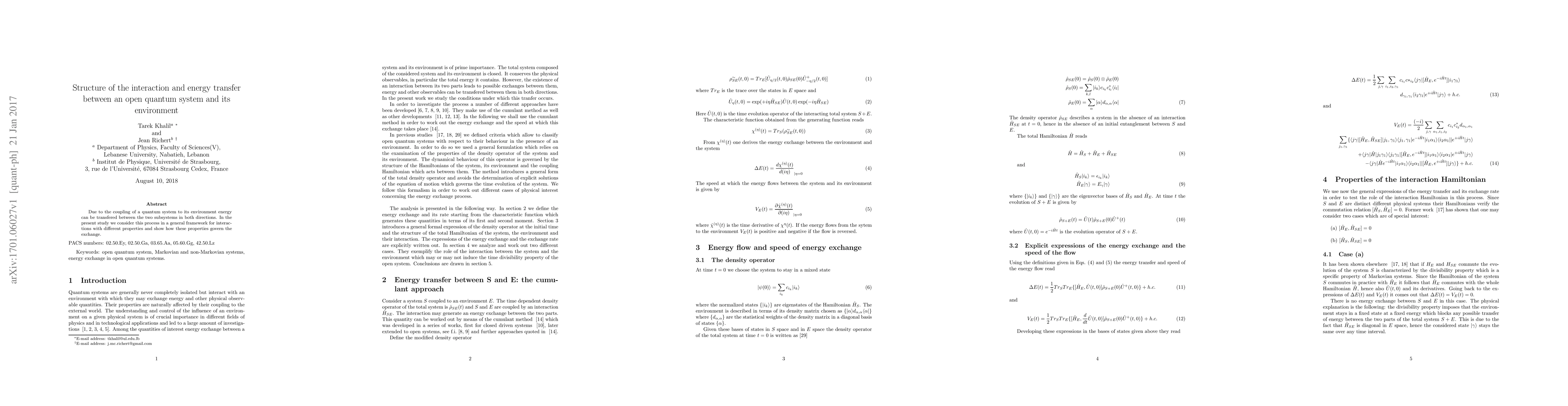 Due to the coupling of a quantum system to its environment energy can be transfered between the two subsystems in both directions. In the present study we consider this process in a general framework for interactions with different properties and show how these properties govern the exchange.