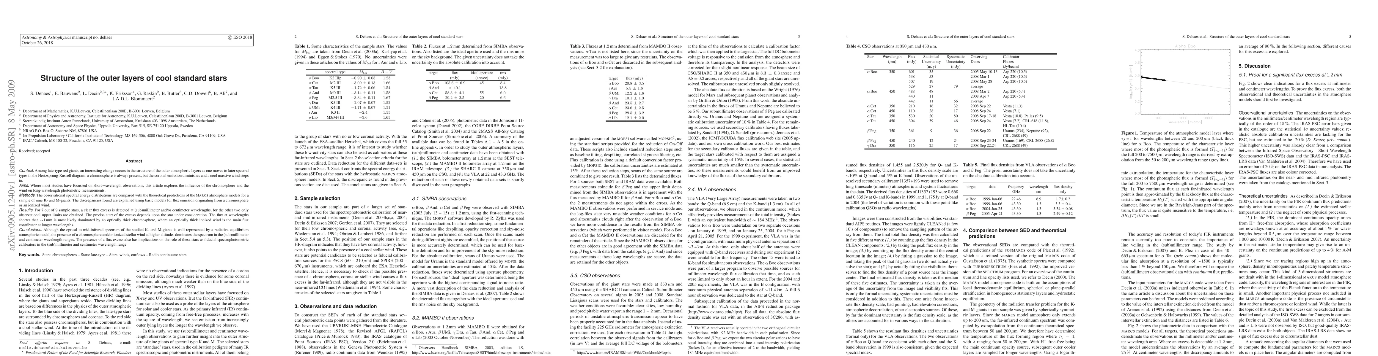 Context: Among late-type red giants, an interesting change occurs in the structure of the outer atmospheric layers as one moves to later spectral types in the Hertzsprung-Russell diagram: a chromosphere is always present, but the coronal emission diminishes and a cool massive wind steps in. Aims: Where most studies have focussed on short-wavelength observations, this article explores the influence of the chromosphere and the wind on long-wavelength photometric measurements. Methods: The observational spectral energy distributions are compared with the theoretical predictions of the MARCS atmosphere models for a sample of 9 K- and M-giants. The discrepancies found are explained using basic models for flux emission originating from a chromosphere or an ionized wind. Results: For 7 out of 9 sample stars, a clear flux excess is detected at (sub)millimeter and/or centimeter wavelengths. The precise start of the excess depends upon the star under consideration. The flux at wavelengths shorter than about 1 mm is most likely dominated by an optically thick chromosphere, where an optically thick ionized wind is the main flux contributor at longer wavelengths. Conclusions: Although the optical to mid-infrared spectrum of the studied K- and M-giants is well represented by a radiative equilibrium atmospheric model, the presence of a chromosphere and/or ionized stellar wind at higher altitudes dominates the spectrum in the (sub)millimeter and centimeter wavelength ranges. The presence of a flux excess also has implications on the role of these stars as fiducial spectrophotometric calibrators in the (sub)millimeter and centimeter wavelength range.