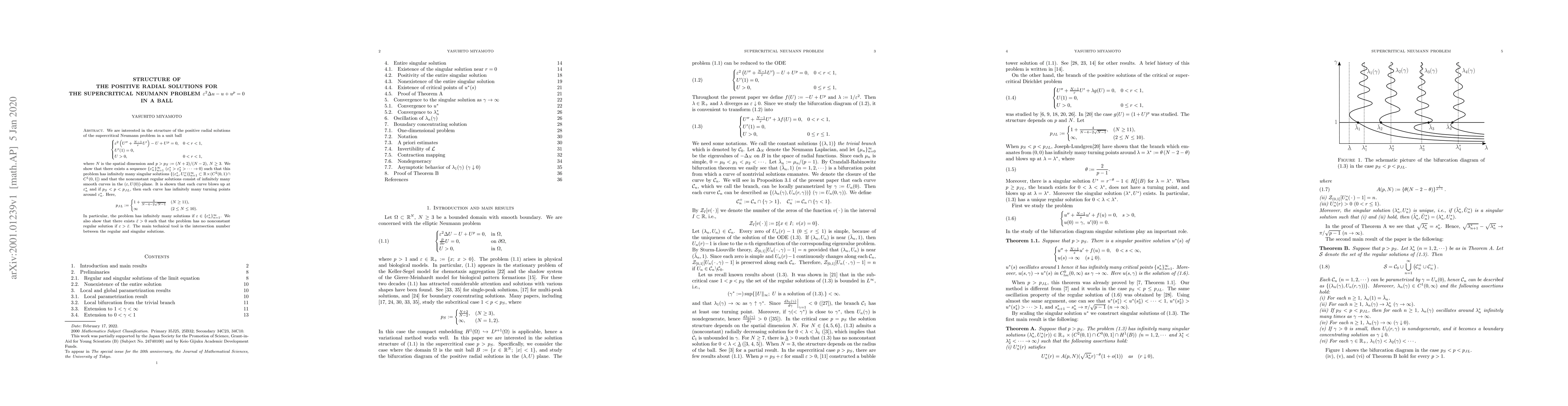 We are interested in the structure of the positive radial solutions of the supercritical Neumann problem $\varepsilon^2\Delta u-u+u^p=0$ on a unit ball in $\mathbb{R}^N$ , where $N$ is the spatial dimension and $p>p_S:=(N+2)/(N-2)$, $N\ge 3$. We show that there exists a sequence $\{\varepsilon_n^*\}_{n=1}^{\infty}$ ($\varepsilon_1^*>\varepsilon_2^*>\cdots\rightarrow 0$) such that this problem has infinitely many singular solutions $\{(\varepsilon_n^*,U_n^*)\}_{n=1}^{\infty}\subset\mathbb{R}\times (C^2(0,1)\cap C^1(0,1])$ and that the nonconstant regular solutions consist of infinitely many smooth curves in the $(\varepsilon,U(0))$-plane. It is shown that each curve blows up at $\varepsilon_n^*$ and if $p_{\rm{S}}