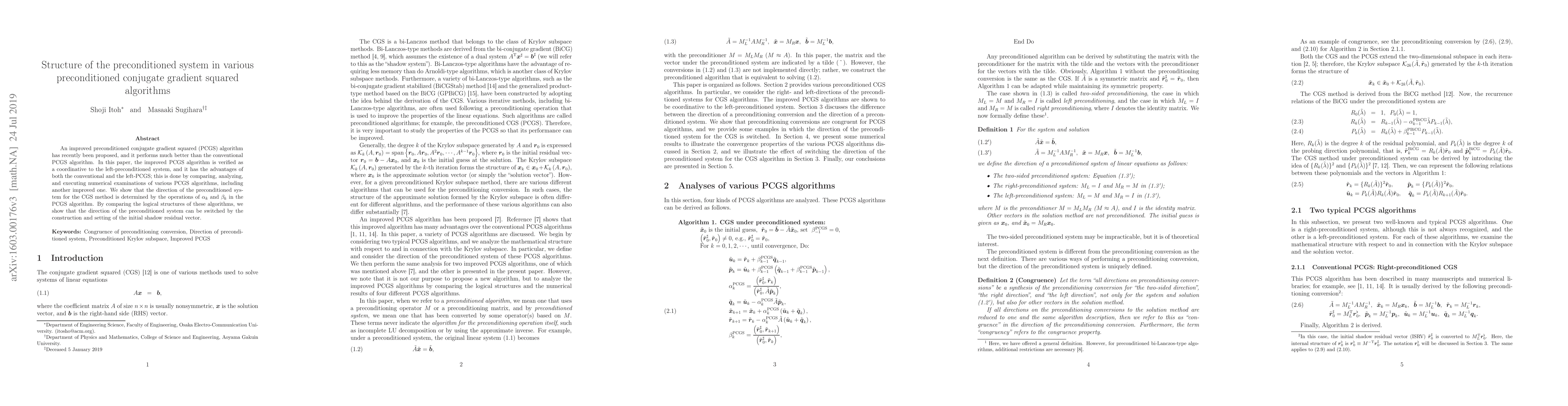 A new conjugate gradient squared algorithm outperforms previous versions by adjusting the direction of the preconditioned system, which can be controlled through initial residual vectors.