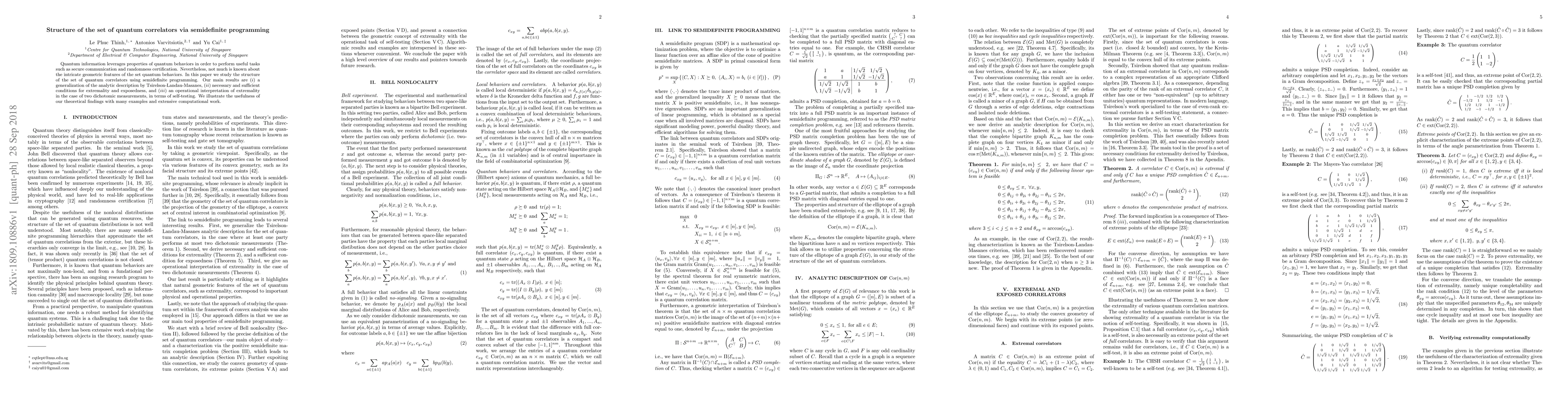 This paper explores the structure of quantum correlators using semidefinite programming, generalizing previous analytic descriptions and providing necessary conditions for extremality and exposedness. It also offers an operational interpretation of extextremality in the context of two dichotomic measurements, supported by numerous examples and computational evidence.