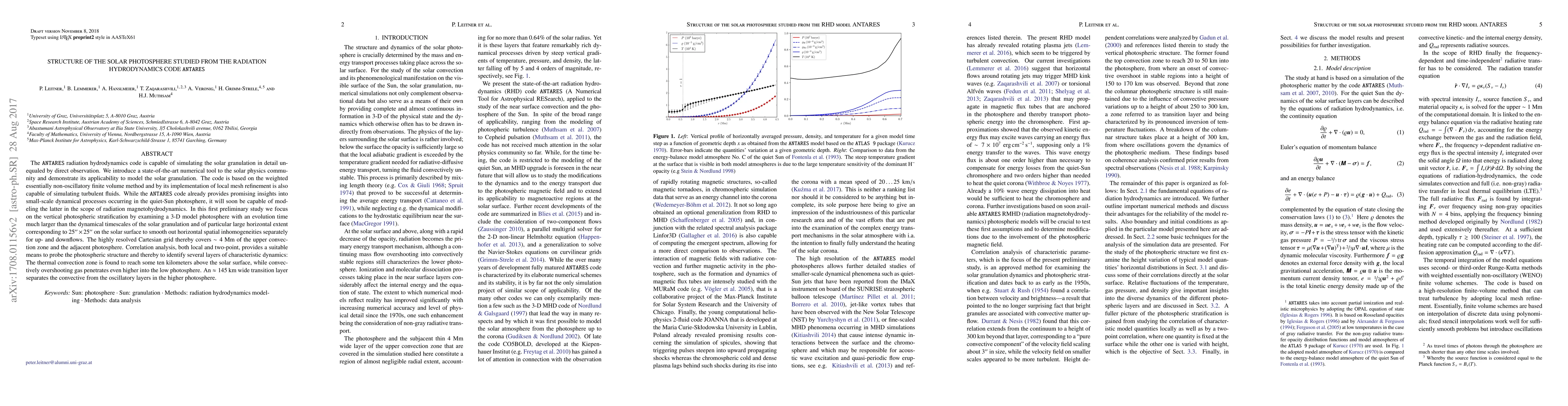The ANTARES radiation hydrodynamics code provides detailed simulations of solar granulation, revealing the vertical stratification of the solar photosphere and identifying distinct layers of dynamic processes. The study highlights a 3-D model of the photosphere, showing the thermal convection zone extending up to ten kilometers above the surface and a transition layer separating convective and oscillatory layers.