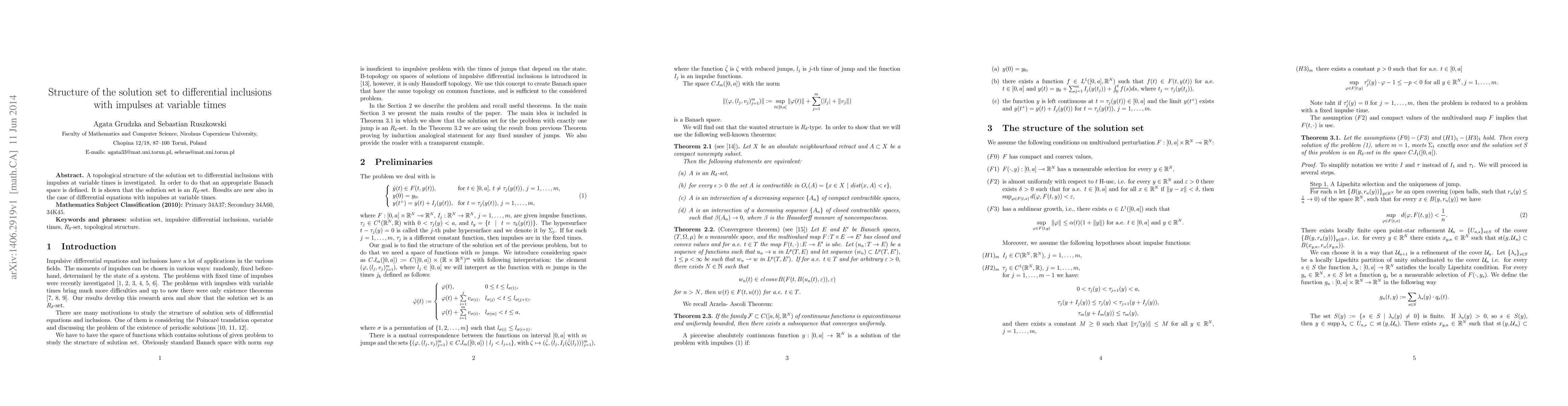 The research explores the structure of solution sets for differential inclusions involving impulses at irregular times, defining a suitable Banach space. It proves the solution set is an $R_{delta}$-set, providing novel insights even for differential equations with impulses at variable times.