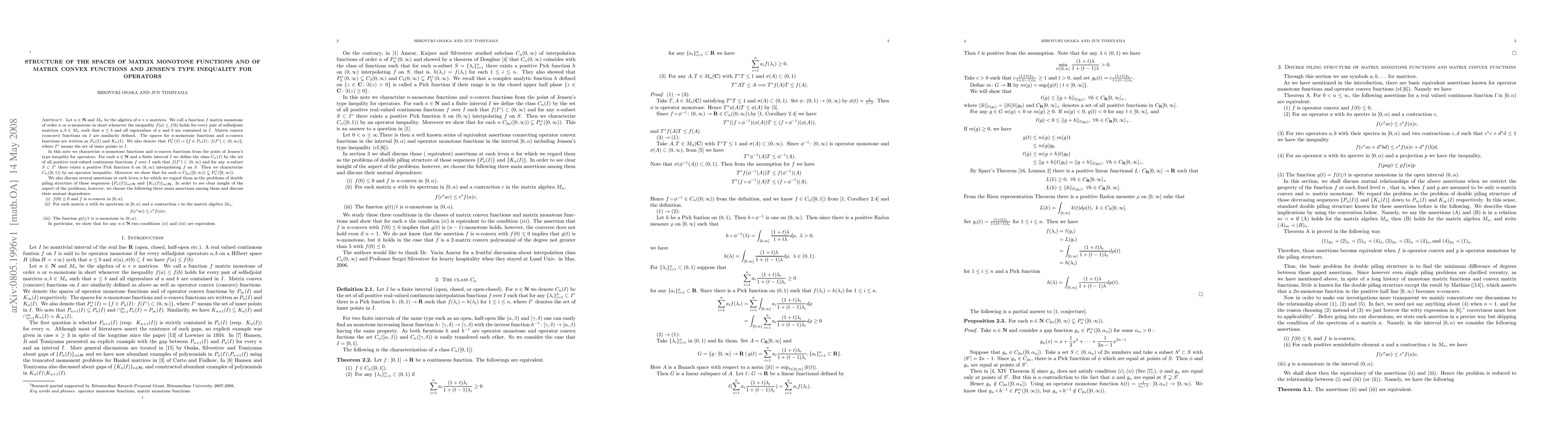 This paper investigates the structure of spaces for matrix monotone and convex functions on a unit interval, focusing on conditions for equivalence between certain inequalities and proving their mutual dependence.