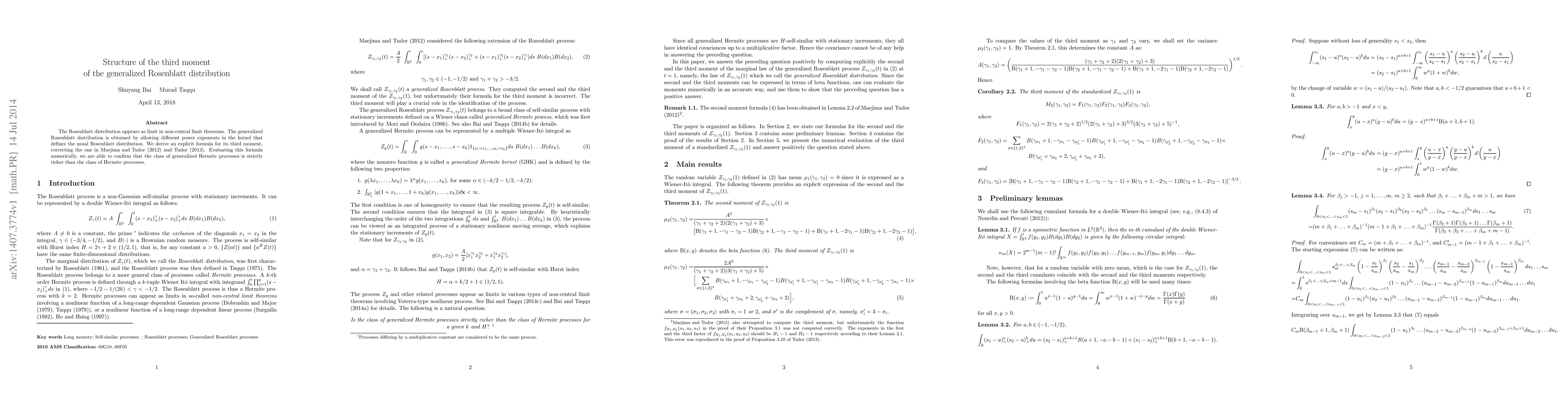 The Rosenblatt distribution appears as limit in non-central limit theorems. The generalized Rosenblatt distribution is obtained by allowing different power exponents in the kernel that defines the usual Rosenblatt distribution. We derive an explicit formula for its third moment, correcting the one in \citet{maejima:tudor:2012:selfsimilar} and \citet{tudor:2013:analysis}. Evaluating this formula numerically, we are able to confirm that the class of generalized Hermite processes is strictly richer than the class of Hermite processes.