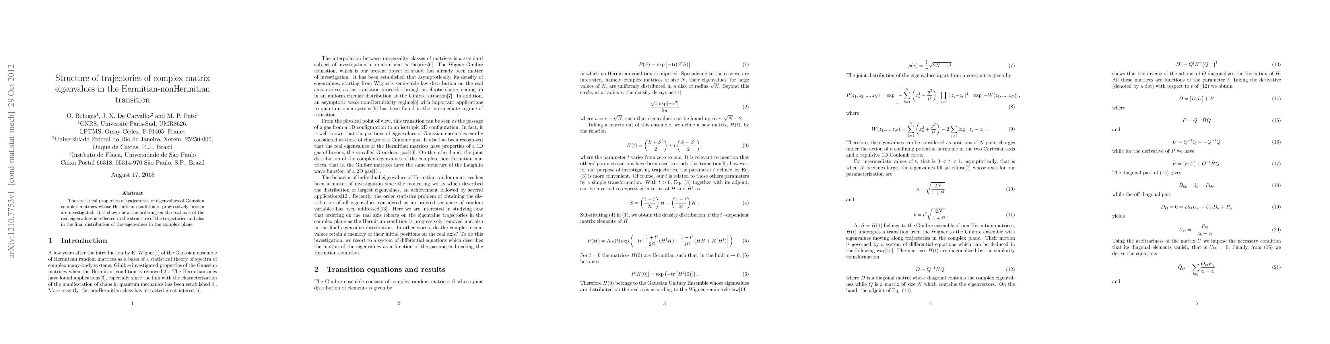 Summary: This paper investigates the statistical properties of eigenvalue trajectories in Gaussian complex matrices transitioning from Hermitian to non-Hermitian states, revealing how real eigenvalue ordering influences both the trajectory structure and the final eigenvalue distribution in the complex plane.
